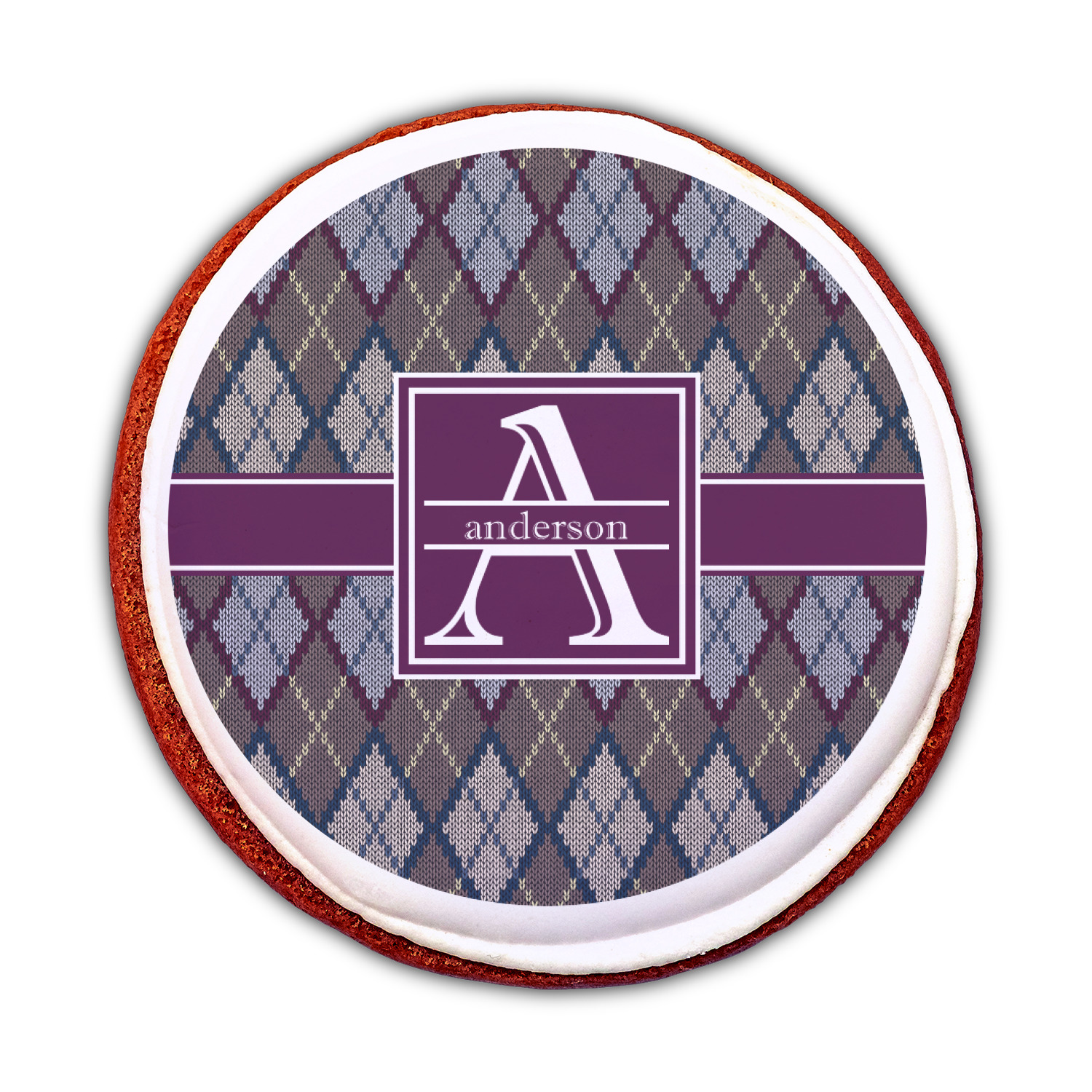Add a cozy touch of a knit sweater to anything with our Knit Argyle design. The primary color of the design is gray with stitches of dark violet, dark blue, and cream. The design also includes a ribbon and label shown in dark violet.