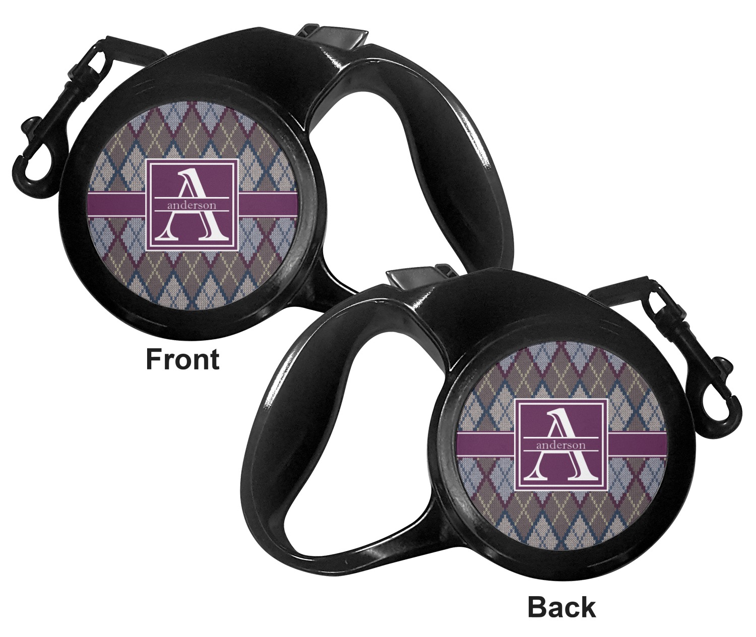 The leash's plastic handle is accommodating of your grip and displays your customization on both sides. The dog leash also features the traditional bolt snap clip, for easy fastening to your dog's collar. The leash and leash handle themselves are both black in color.