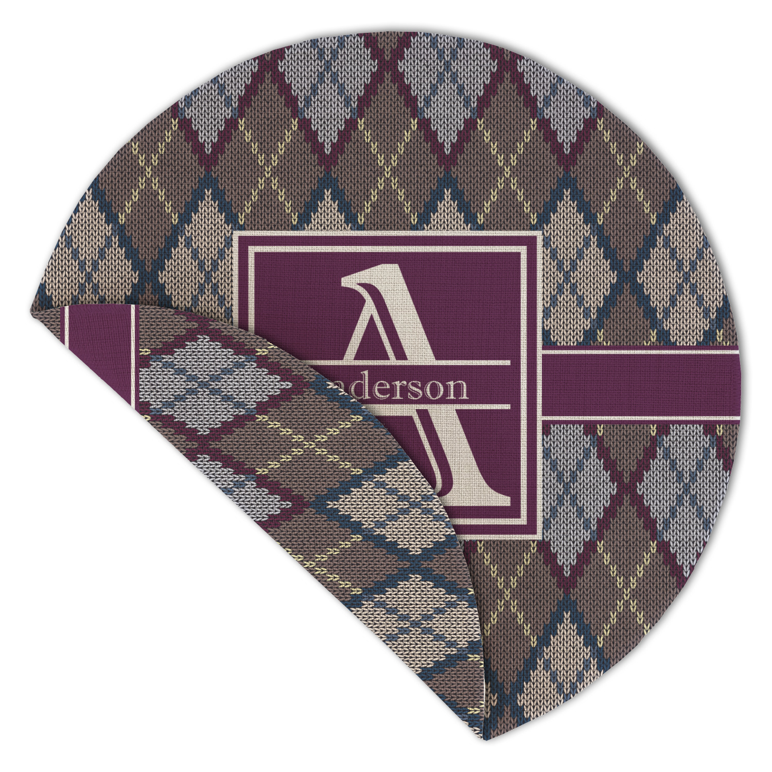 Add a cozy touch of a knit sweater to anything with our Knit Argyle design. The primary color of the design is gray with stitches of dark violet, dark blue, and cream. The design also includes a ribbon and label shown in dark violet.