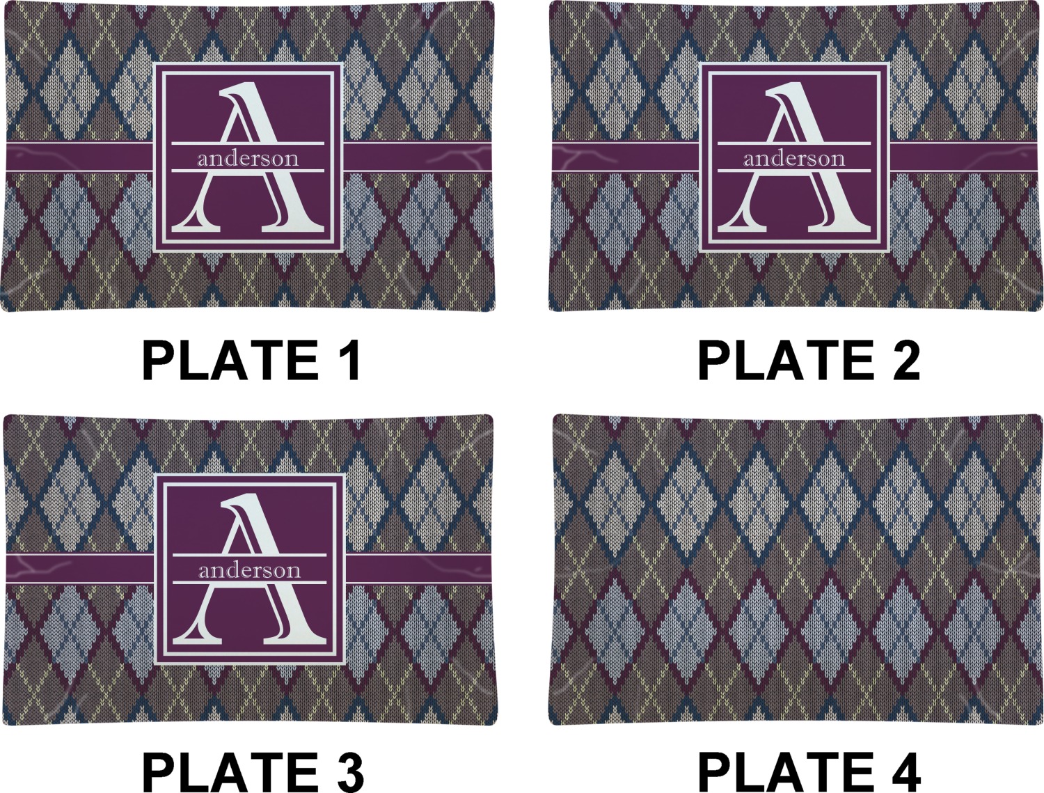 Add a cozy touch of a knit sweater to anything with our Knit Argyle design. The primary color of the design is gray with stitches of dark violet, dark blue, and cream. The design also includes a ribbon and label shown in dark violet.