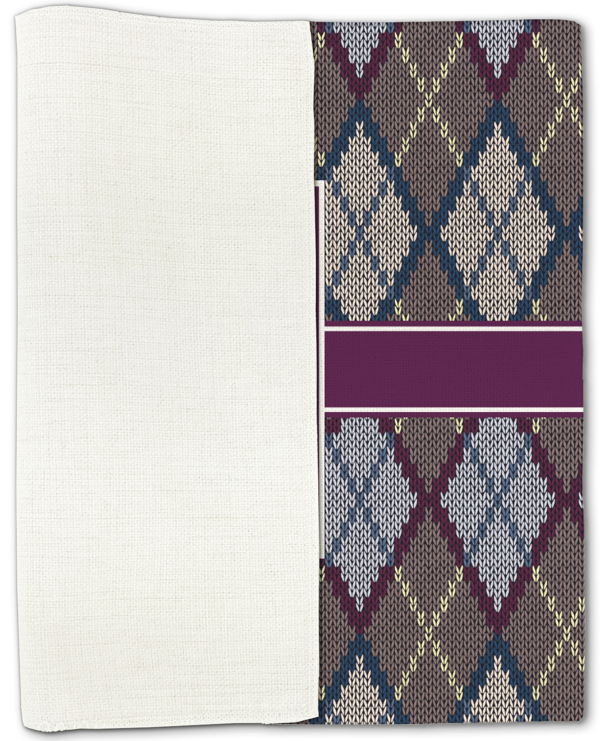 Add a cozy touch of a knit sweater to anything with our Knit Argyle design. The primary color of the design is gray with stitches of dark violet, dark blue, and cream. The design also includes a ribbon and label shown in dark violet.