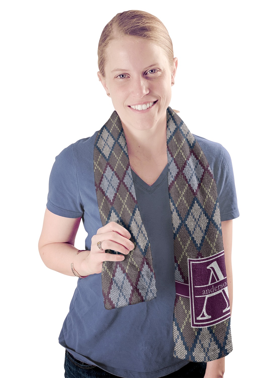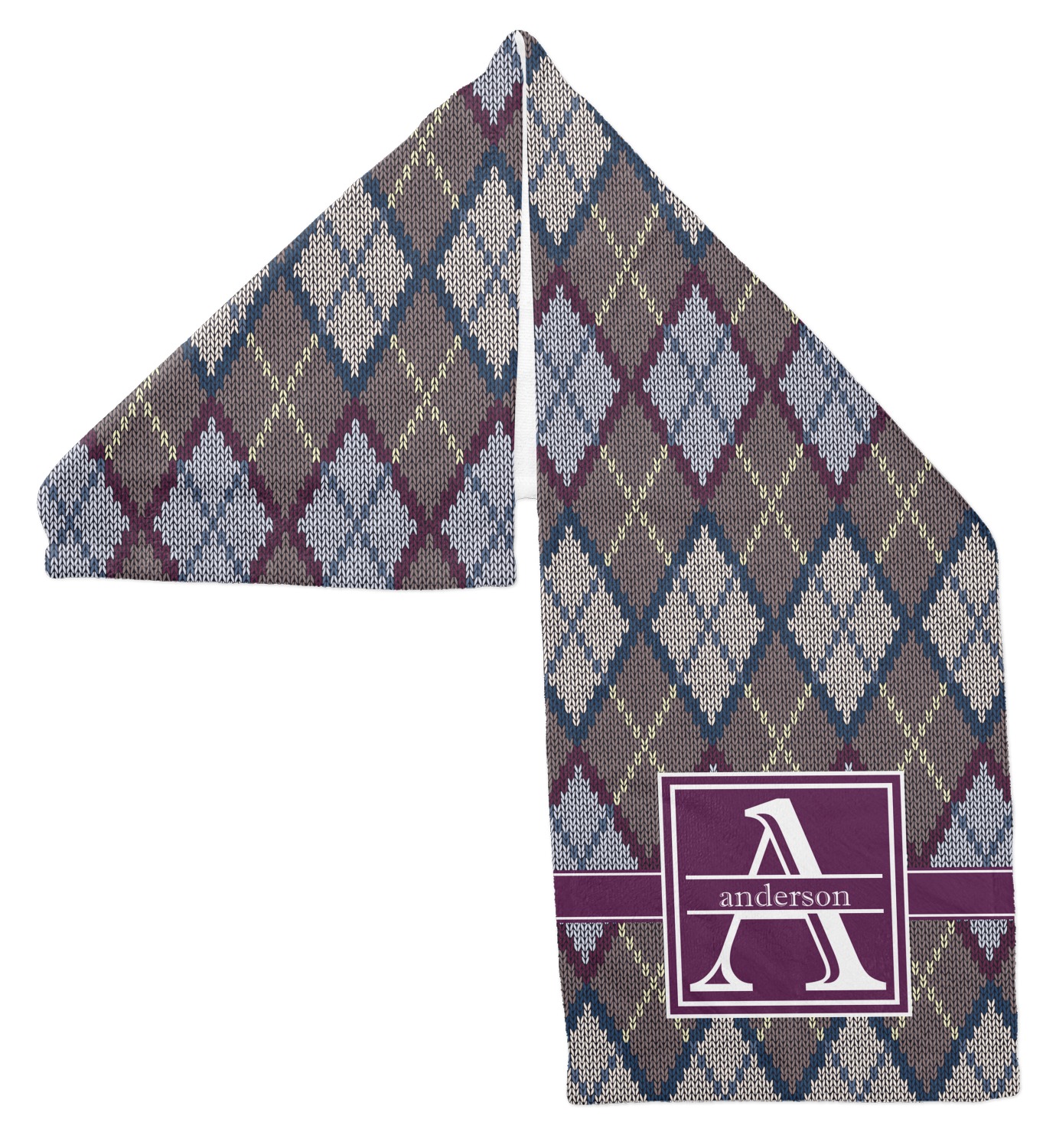 Add a cozy touch of a knit sweater to anything with our Knit Argyle design. The primary color of the design is gray with stitches of dark violet, dark blue, and cream. The design also includes a ribbon and label shown in dark violet.