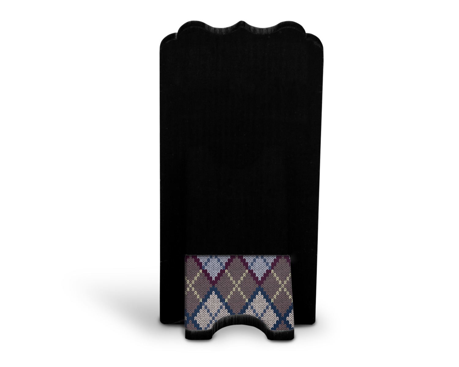 These cell phone holders are comprised of two hardboard pieces, that lock into and steady one another. The bottom part of the mobile phone stand is spacious enough to support both your phone and your charger, while it is not in use. We print your customization atop the face of this stand, while the remaining sides are a sophisticated, black color.