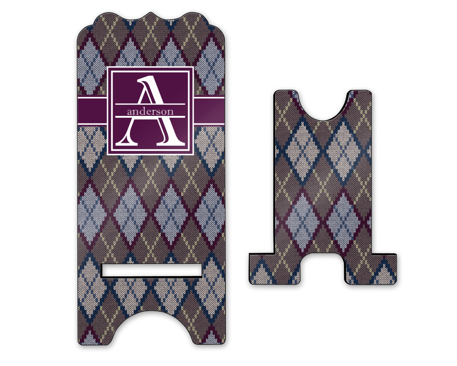 Add a cozy touch of a knit sweater to anything with our Knit Argyle design. The primary color of the design is gray with stitches of dark violet, dark blue, and cream. The design also includes a ribbon and label shown in dark violet.