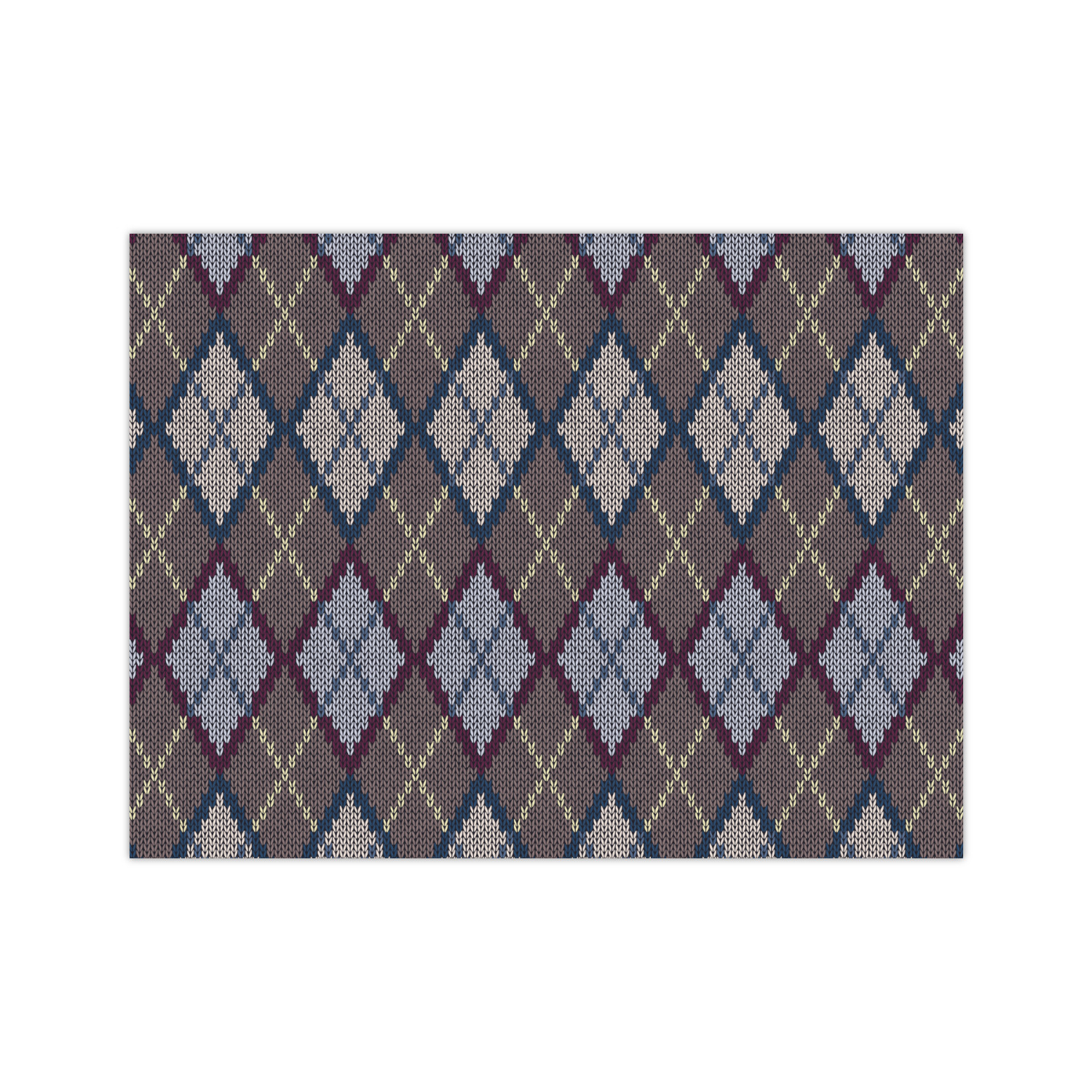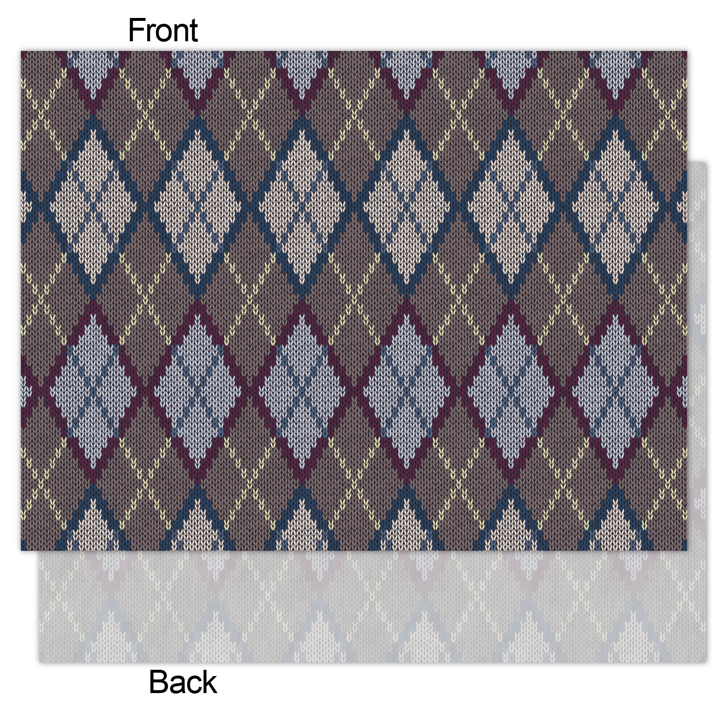 Add a cozy touch of a knit sweater to anything with our Knit Argyle design. The primary color of the design is gray with stitches of dark violet, dark blue, and cream. The design also includes a ribbon and label shown in dark violet.