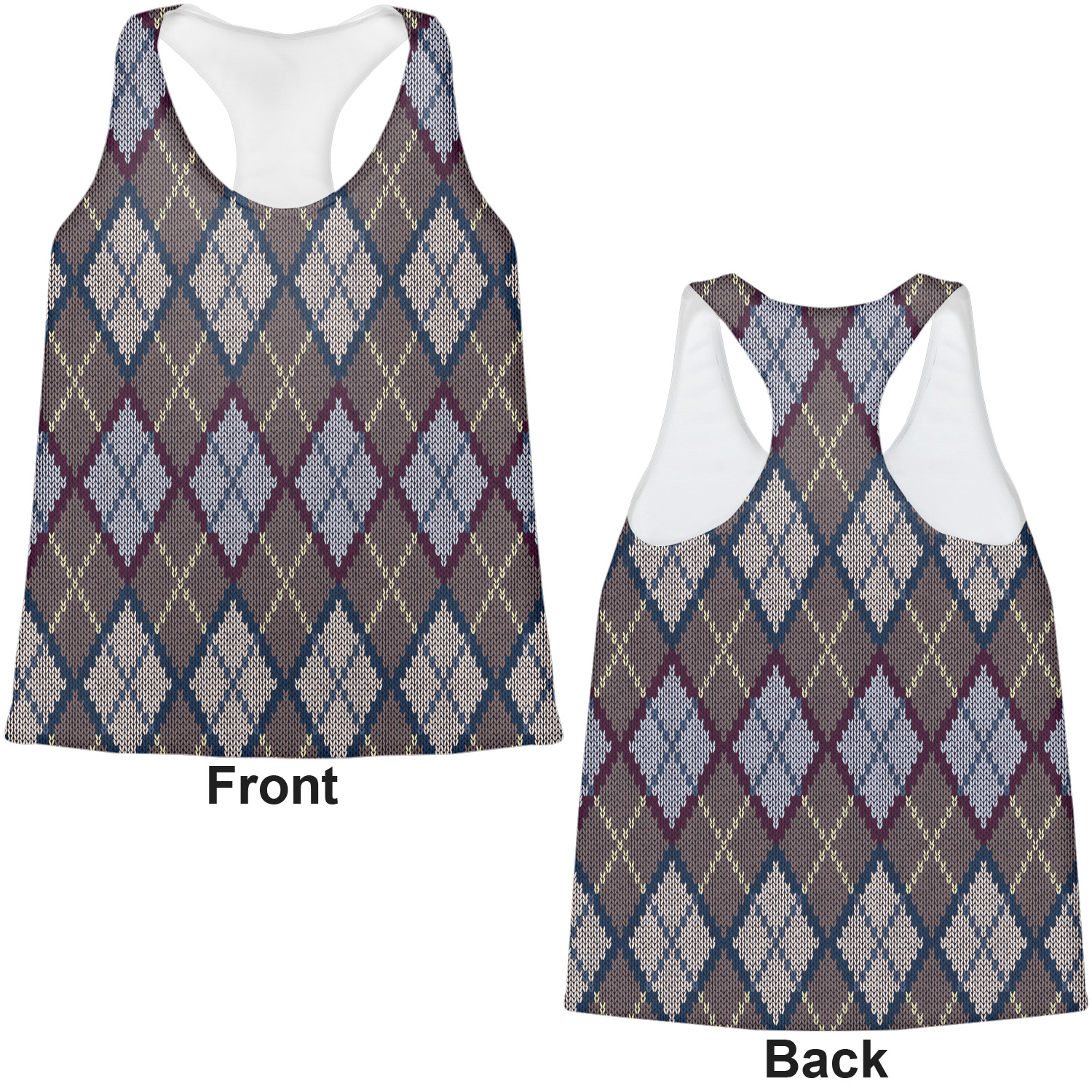 Add a cozy touch of a knit sweater to anything with our Knit Argyle design. The primary color of the design is gray with stitches of dark violet, dark blue, and cream. The design also includes a ribbon and label shown in dark violet.