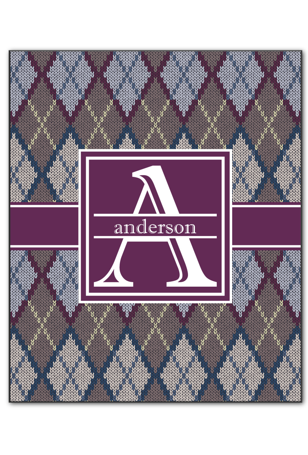 Add a cozy touch of a knit sweater to anything with our Knit Argyle design. The primary color of the design is gray with stitches of dark violet, dark blue, and cream. The design also includes a ribbon and label shown in dark violet.