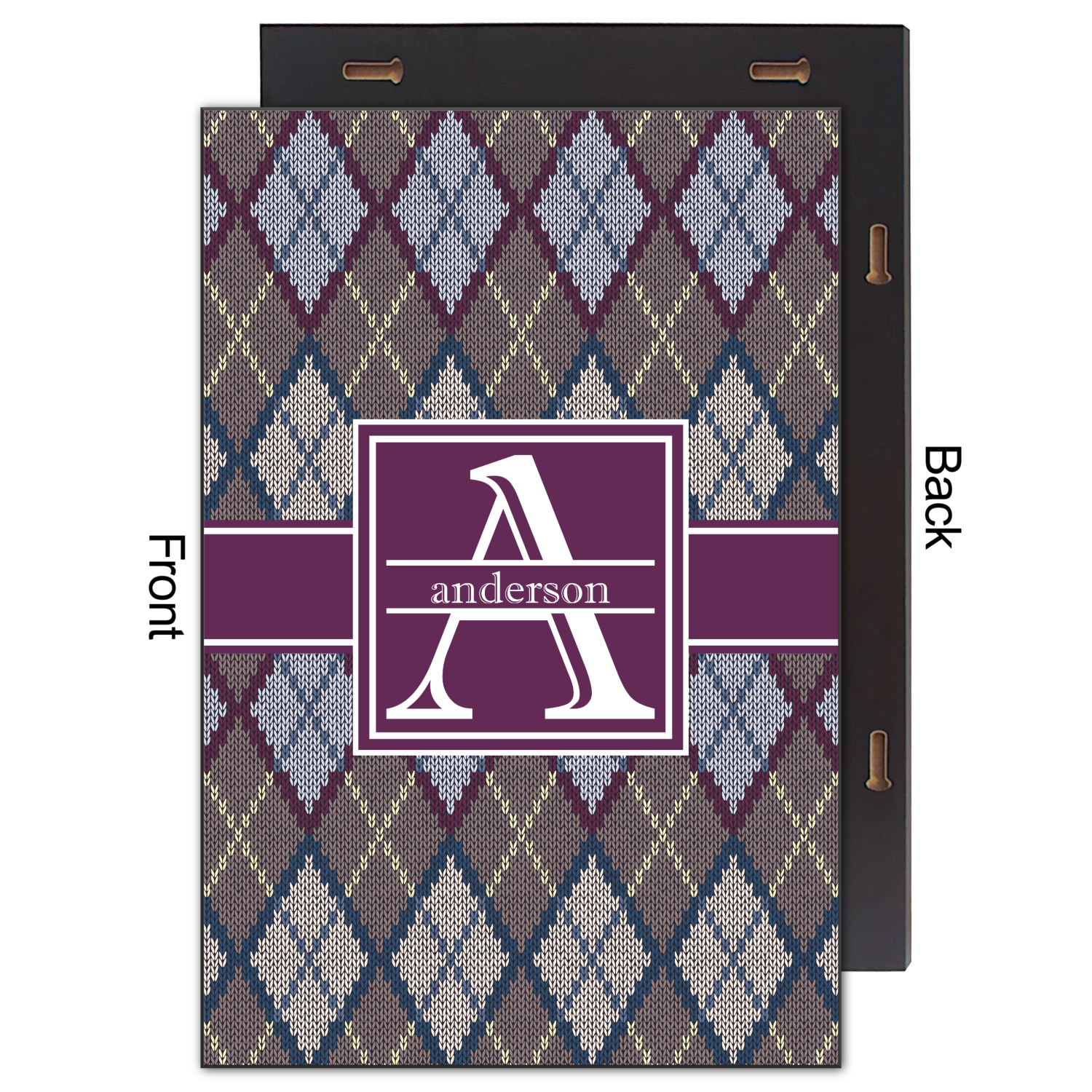 Add a cozy touch of a knit sweater to anything with our Knit Argyle design. The primary color of the design is gray with stitches of dark violet, dark blue, and cream. The design also includes a ribbon and label shown in dark violet.