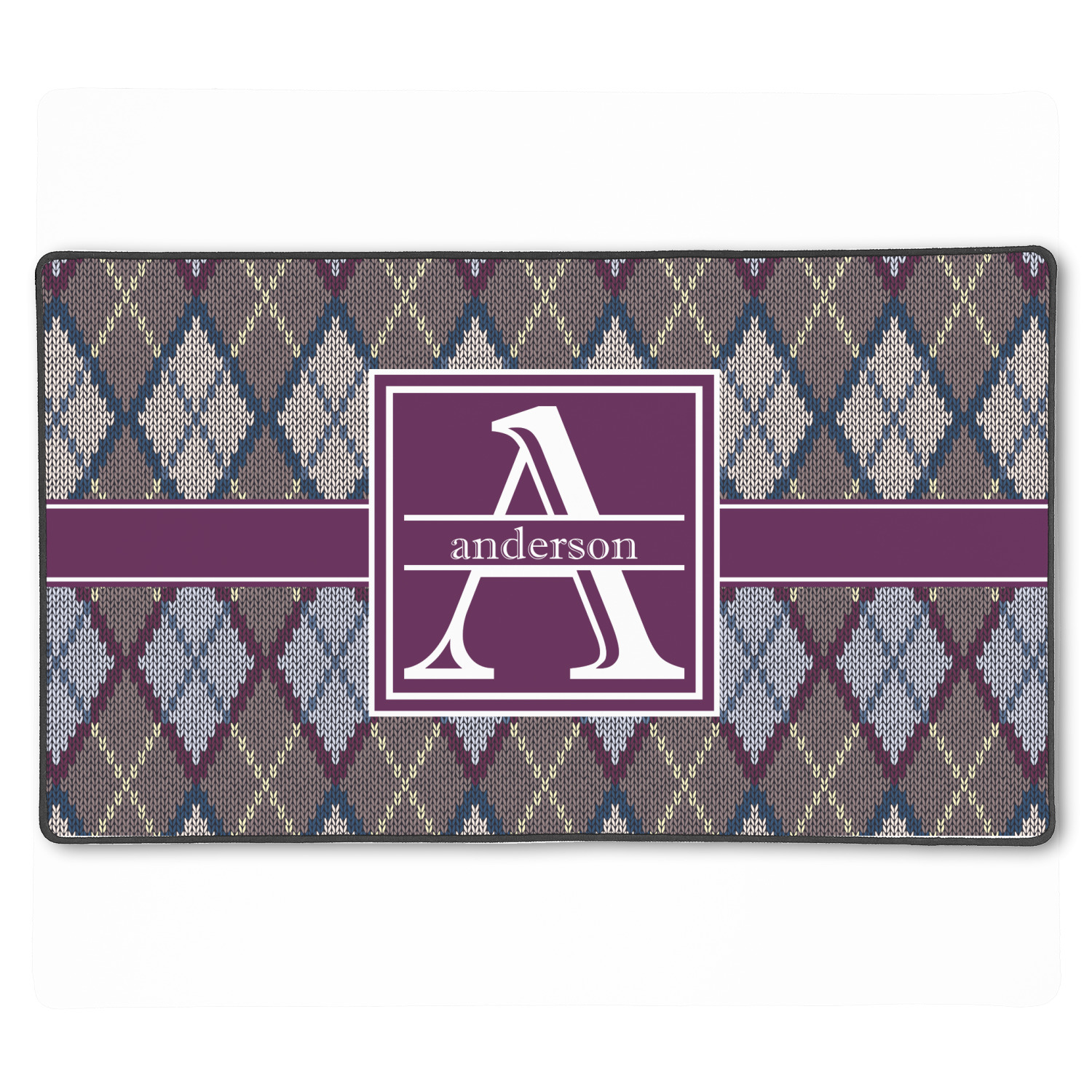Add a cozy touch of a knit sweater to anything with our Knit Argyle design. The primary color of the design is gray with stitches of dark violet, dark blue, and cream. The design also includes a ribbon and label shown in dark violet.