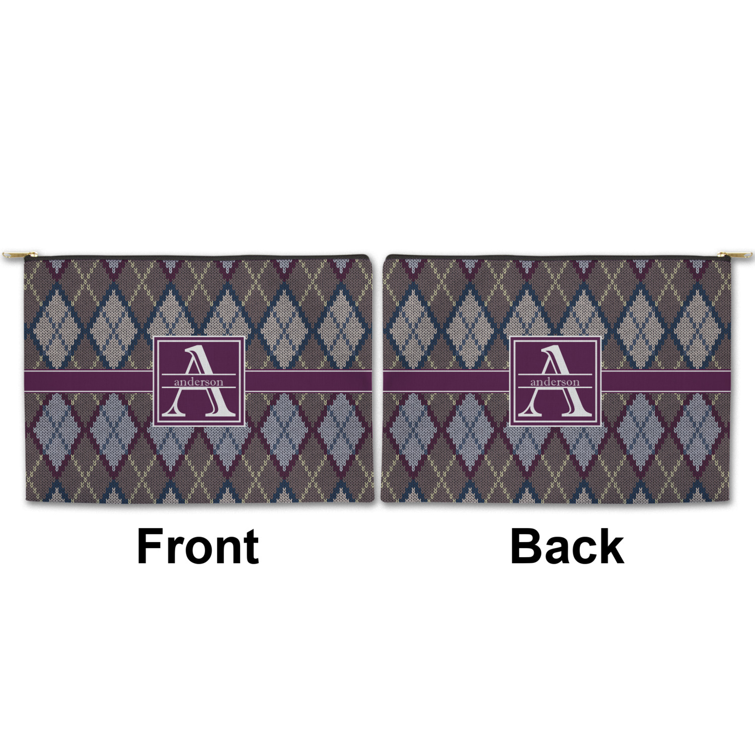 You can design both the front and the back of the pouch - same design, two complementary designs or two totally different designs - the choice is yours! We offer many different personalization styles i.e. name, name & initial, monograms - so the choice to personalize is also yours.