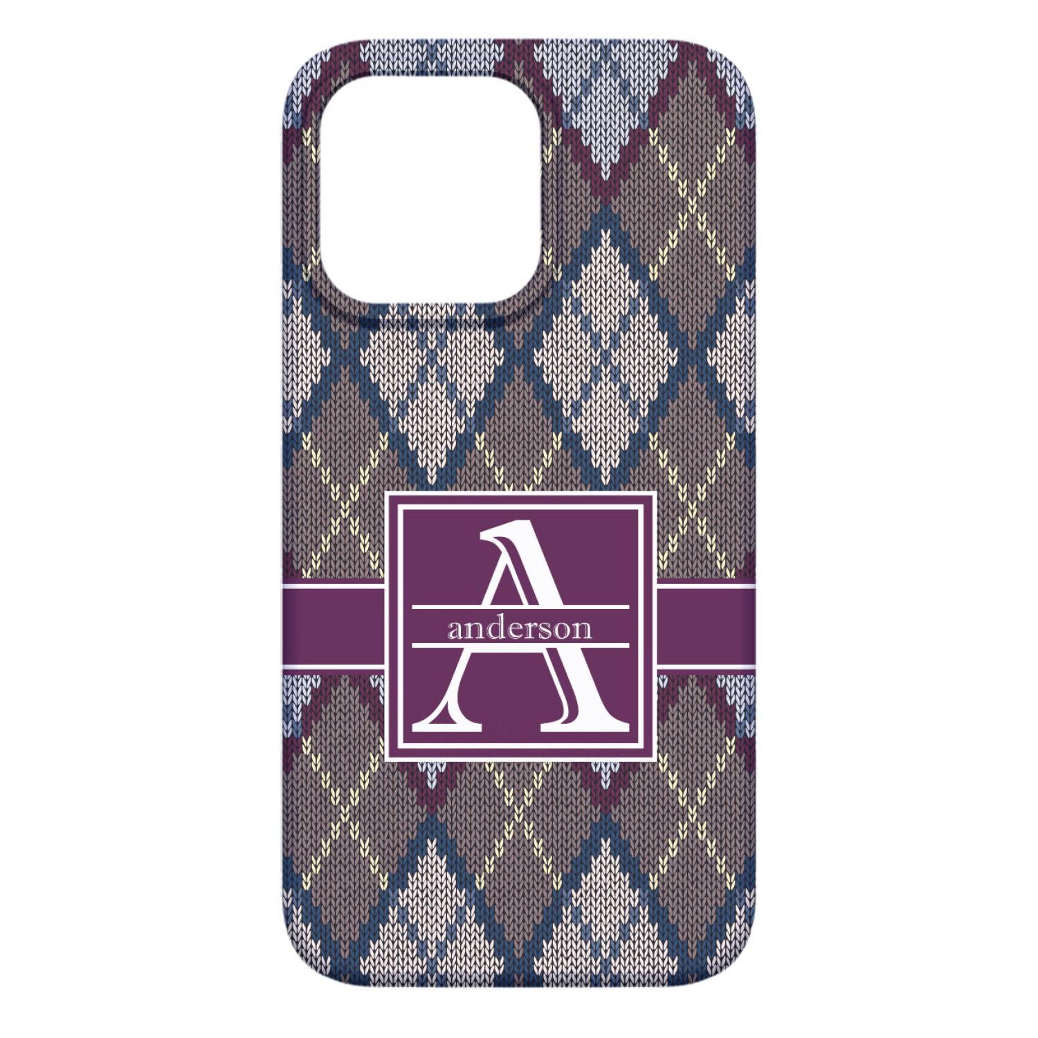 Add a cozy touch of a knit sweater to anything with our Knit Argyle design. The primary color of the design is gray with stitches of dark violet, dark blue, and cream. The design also includes a ribbon and label shown in dark violet.