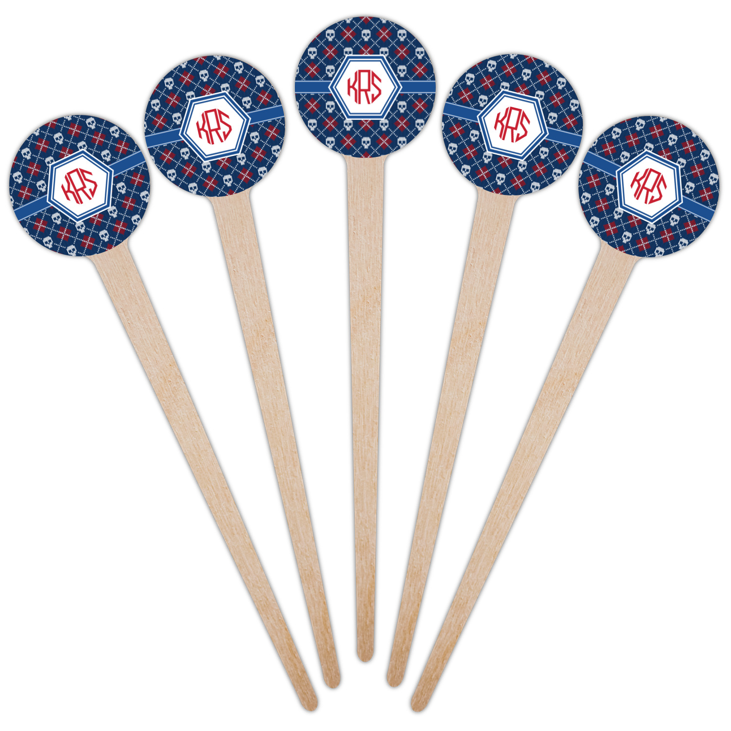 Shape + Symbol Designs for 4" Round Wooden Food Picks - Single-Sided