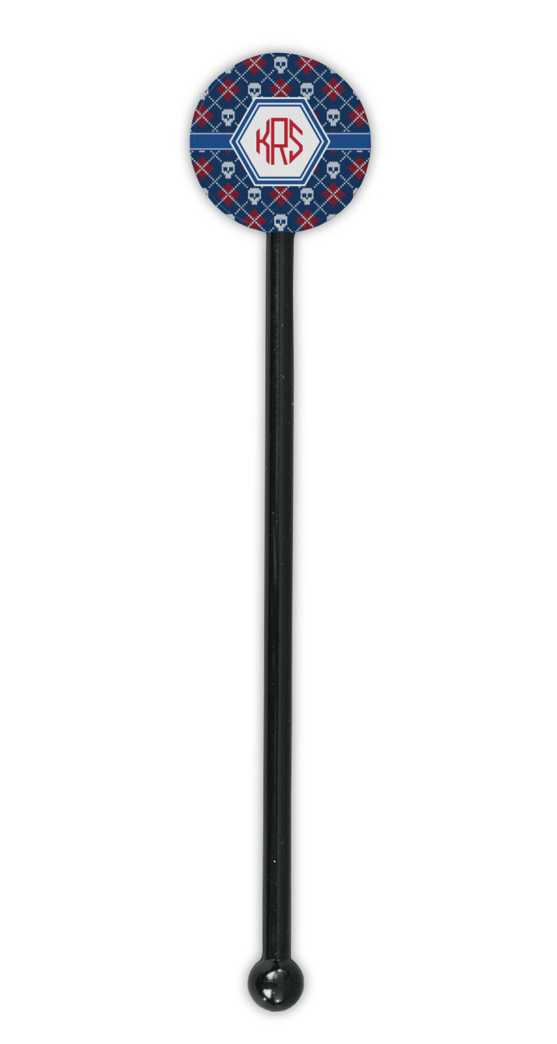 Diamond Designs for 5.5" Round Plastic Stir Sticks - Black - Single-Sided