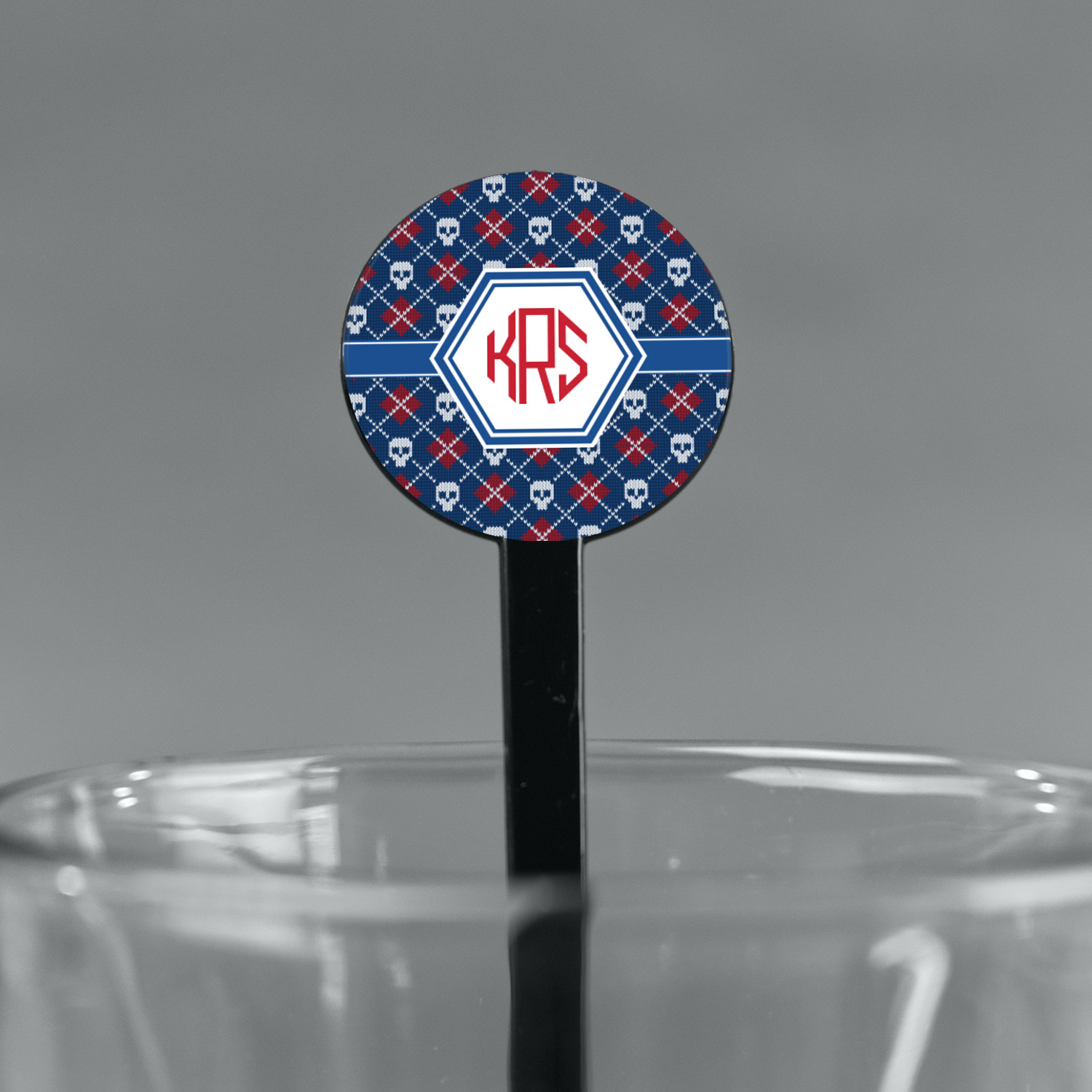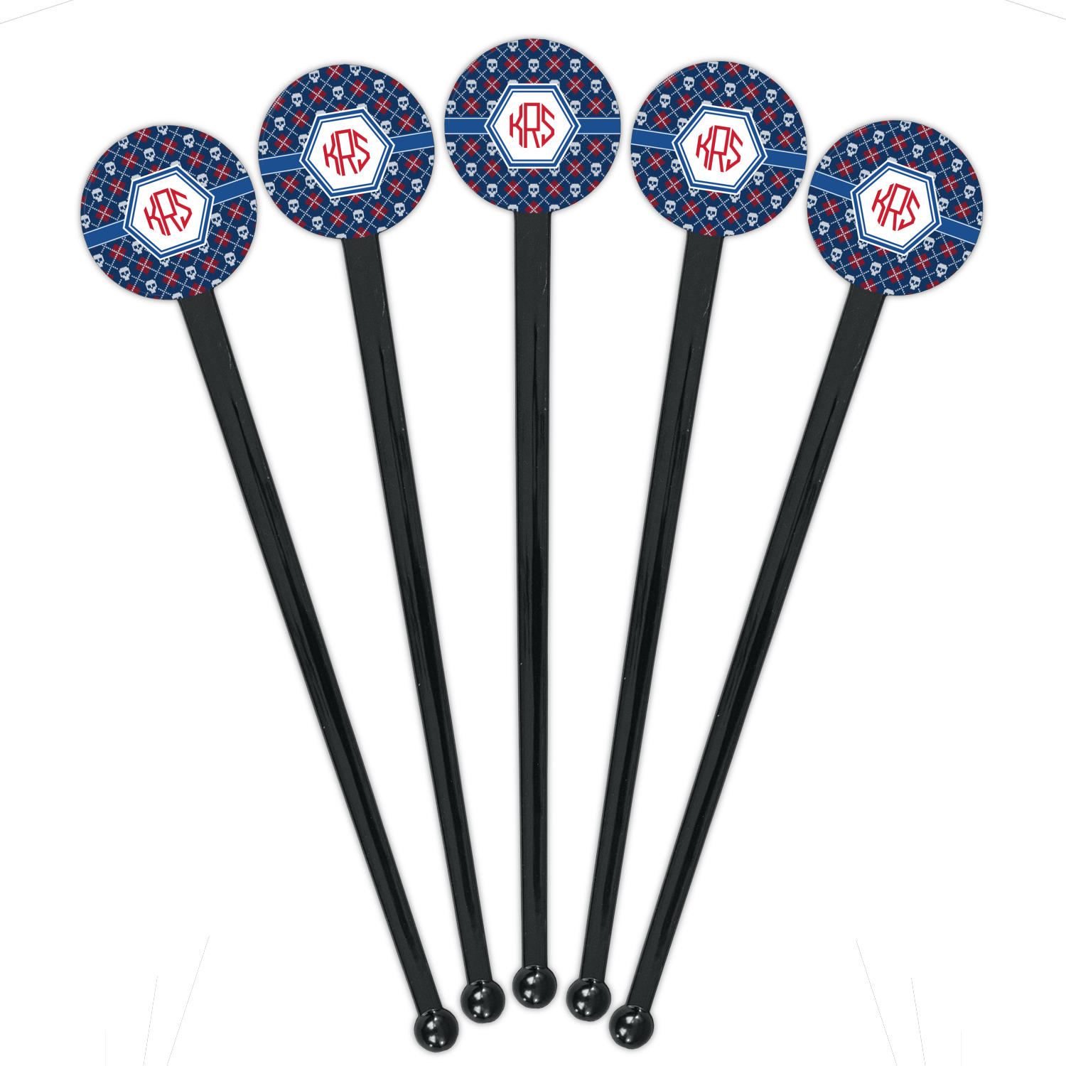 Shape + Symbol Designs for 7" Round Plastic Stir Sticks - Black - Double-Sided