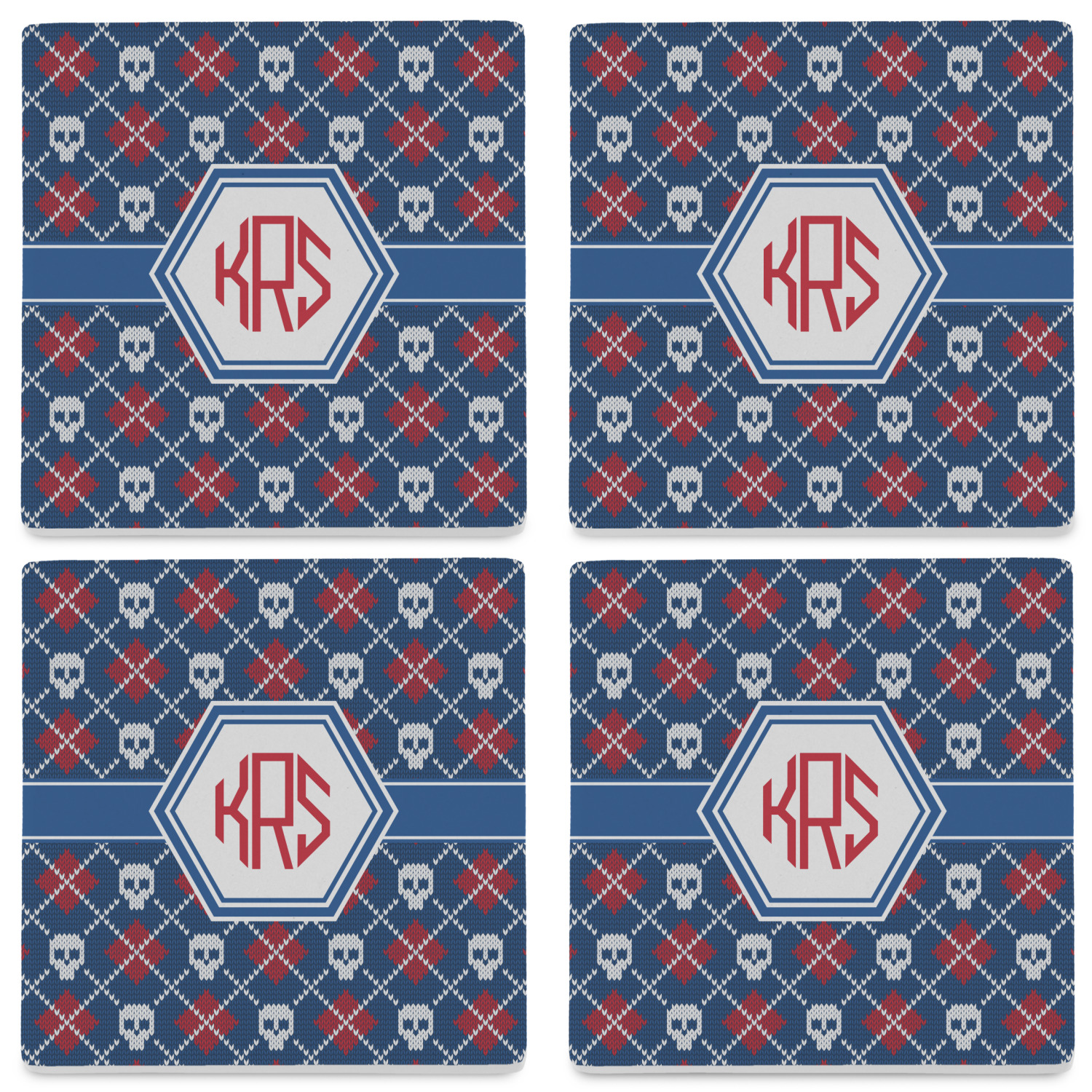 By default, the 4 coasters all have the same design on them, however, you can change that and have a different design on each one of the 4 coasters. The choice is yours.