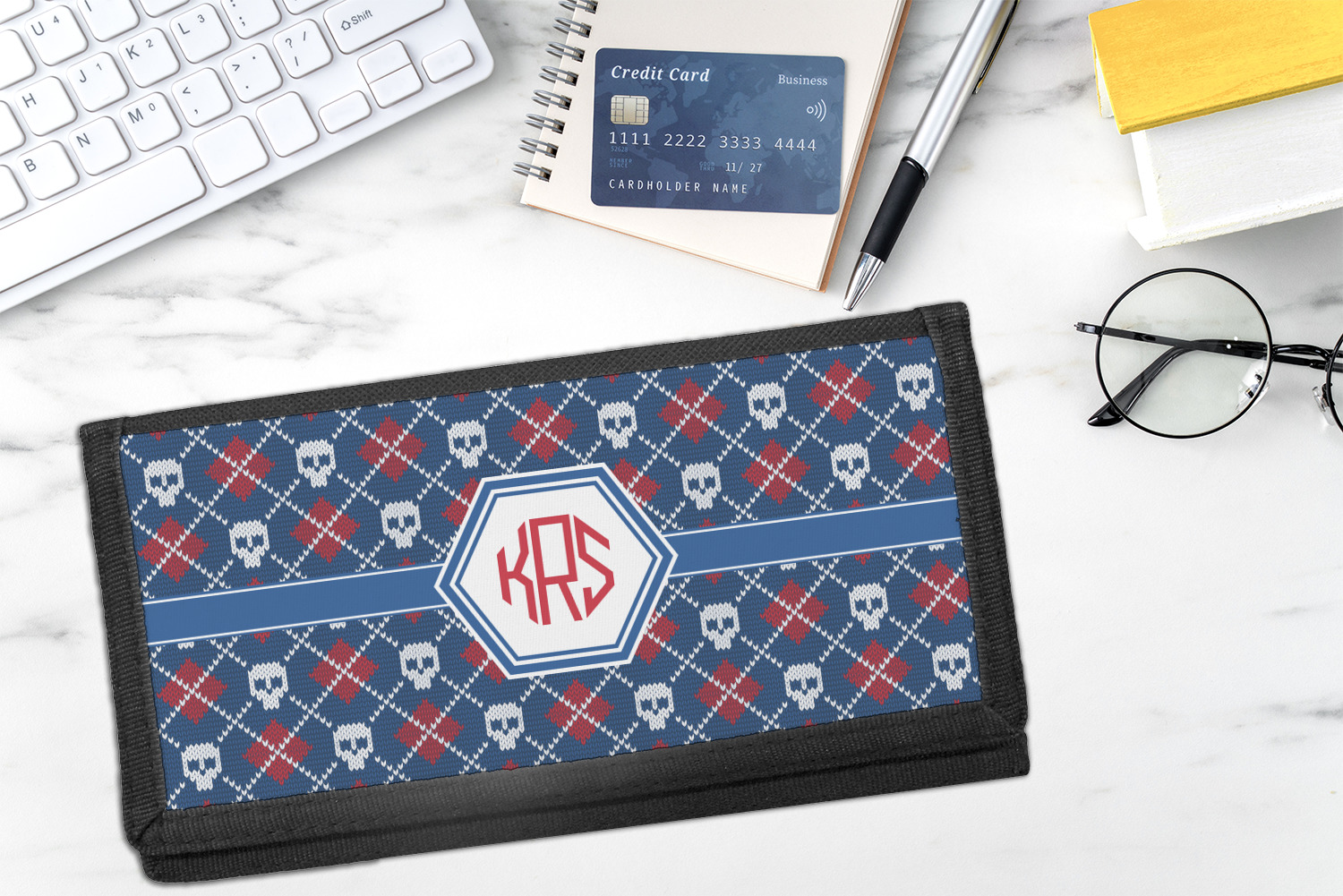 The checkbook cover is made of a durable canvas and the front flap is decorated with a vibrant design of your choosing. With 4 slots for credit cards or IDs, and 2 compartments for your checkbook register, cash, receipts, business cards, and more; this checkbook cover could easily double as a wallet.