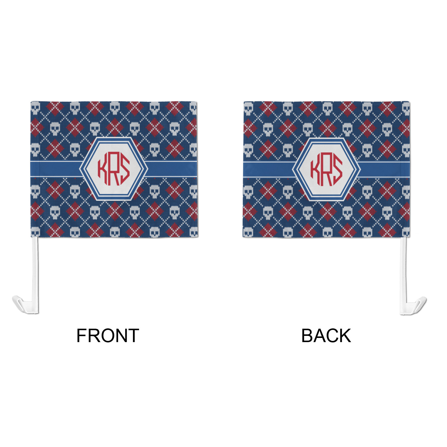 Our personalized flags are made from a durable, yet lightweight cloth that will proudly bear your logo or design of choice, while withstanding the outside elements. We have two size options - 8" x 11" and 11" x 15". Both come with a flag pole which includes a clip that secures the pole to the side window, whether it is rolled up or down. The flags are printed on both sides to display your design from all directions.