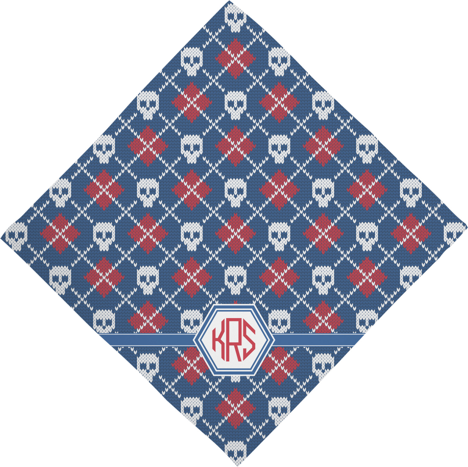 This beautiful pet bandana really is the perfect accessory. It is made from a silky feeling polyester and measures at approximately 23" x 23". Your personalization will be printed on a diagonal, so that you are able to read the personalization when folded into a triangle. This bandana fits best on large dogs, but can be folded smaller if there is no personalized text to fit smaller pets.
