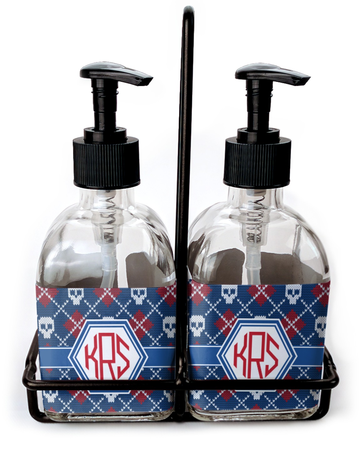 You can purchase these personalized soap dispensers as singulars, or as a set with two bottles. With your purchase of the set, we include a black frame that complements the black color of the pumps and adds to the overall classy look of the piece.