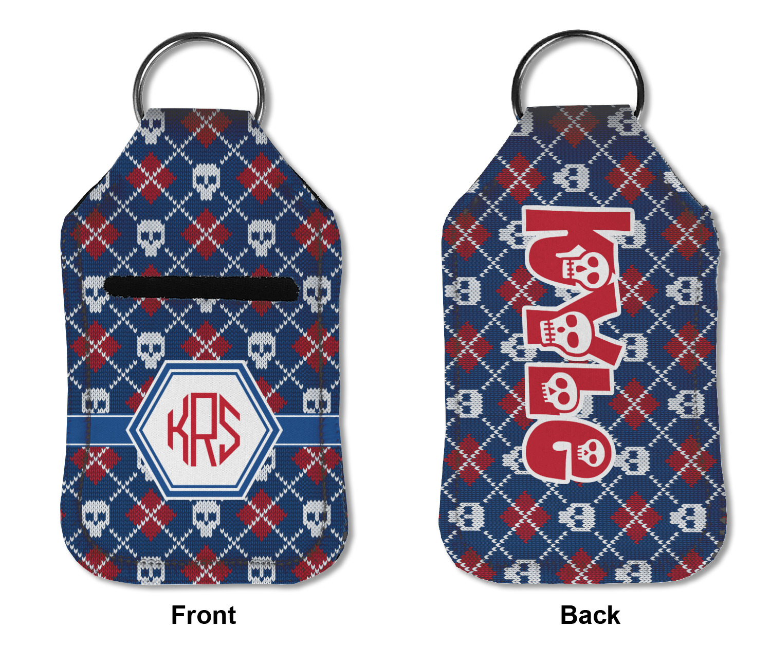 Each hand sanitizer holder comes with its own empty travel-sized, refillable hand sanitizer sure to fit snug in your customized sanitizer case! Our hand sanitizer cases are a durable, yet soft neoprene material sure to last any daily activities or travel agenda. Customize and personalize a hand sanitizer bottle holder with one of our two sizes - small (4.25" x 2.25") or large (5.5" x 2.5"). Each travel sanitizer holder comes with a keyring for attachment on bags, keys, or more!