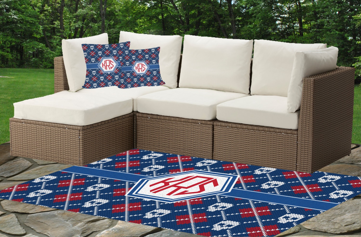 Our rugs are available to you in multiple sizes and we can also do a custom size / design just for you (contact us for custom sizing). Our custom indoor / outdoor rugs are available in multiple patterns and prints and many of the patterns are available in 45 different colors - so you should be able to find something to suit your needs. If you are unable to find what you are looking for or need a custom solution, contact us and we will try our best to meet your needs.