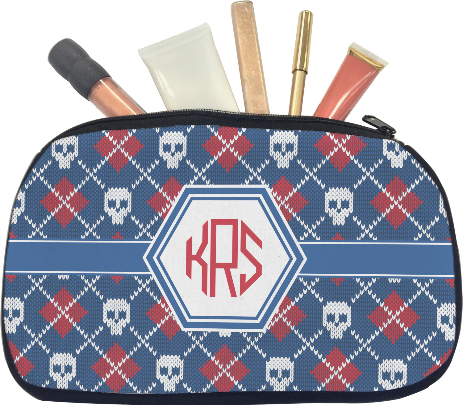 Our personalized makeup bags are available in many different designs, patterns and colors - so you are sure to find one that will love. They are made of neoprene (same material as wet-suits) and thus are water resistant, so spillages in your makeup bag will not end up all over you purse. They are customized on one side and are black on the other side and the zipper is black as well.