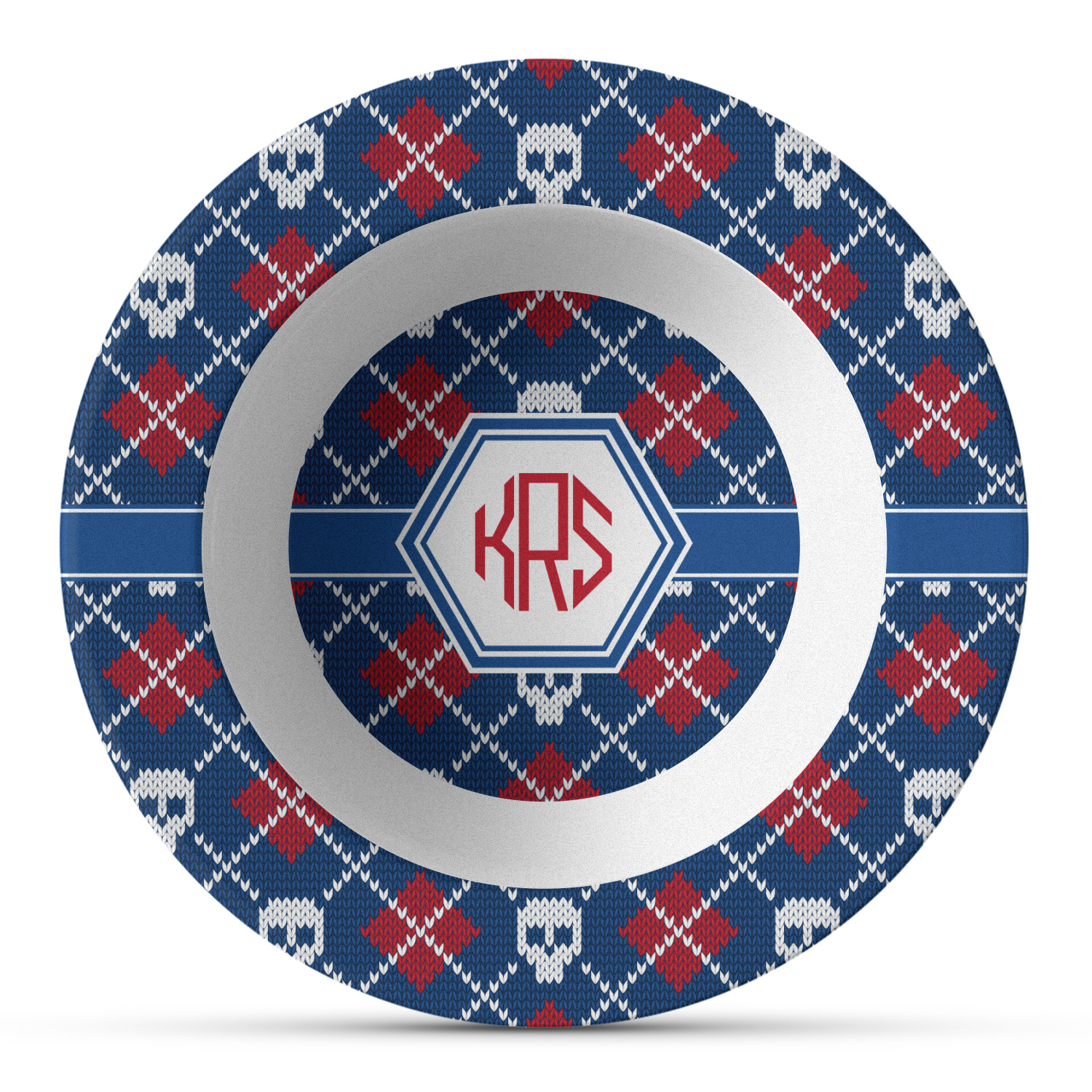 Made from a composite, thermo-set, polymer plastic, these dinner bowls have the versatility, durability, and weight of a melamine bowl without any of the downsides of melamine. Unlike melamine dinnerware, these bowls can withstand high heat. These custom plastic bowls can even handle temperatures of up to 250 degrees Fahrenheit, for up to 60 minutes. The pieces of our plastic dinner set are never made with harmful chemicals, such as BPAs, formaldehyde, DEHPs. We display your personalization on the base of this bowl's interior, while the bowl itself has an 8.75" diameter and is 1.75" tall.