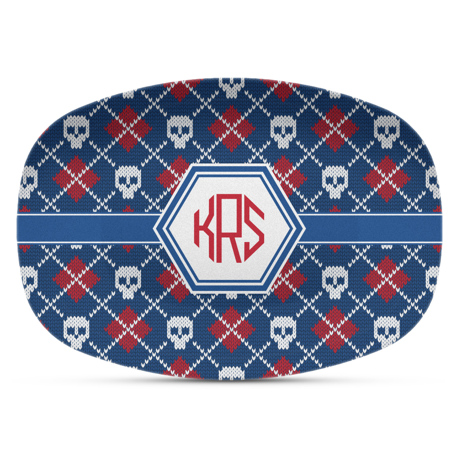 These serving platters are made from a composite, thermo-set, polymer plastic that gives it the versatility, durability, and weight of a melamine platter, without any of the downsides of melamine. These personalized platters, can withstand temperatures up to 250 degrees Fahrenheit, for up to 60 minutes. No harmful chemicals, such as BPA, formaldehyde, and DEHPs were used in the manufacturing of this product. This large serving platter measures at 14" x 10.25", and is spacious enough to hold any of your appetizers or bite-sized desserts. The platter exhibits your personalization across the entirety of its front.