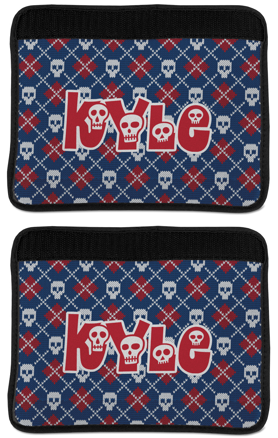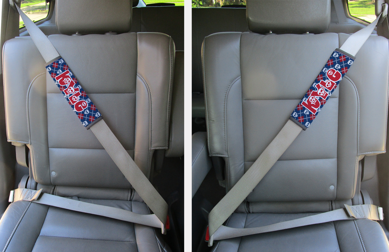 Made from neoprene, our seat belt strap covers wrap around the belt itself and have a Velcro tab for easy attachment and closure. The belt's edges are trimmed with a black polyester for a secure finish. Each cover is 9.5 by 7 inches when open and 9.5 by 2.5 inches when closed. We print your personalized design on the face of the seat belt pad.