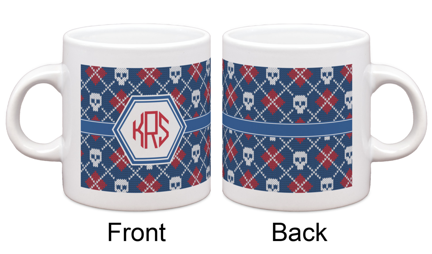 Each of our espresso mugs is a ceramic material sure to keep your drink warm. Personalize one cup for yourself, or order a set of 4! Its the perfect little gift for any coffee lover! We carry two sizes for you to personalize - 3 oz. (approx. 3.25" x 2.325" x 2.625") or 6 oz. (approx. 4" x 2.9" x 2.9"). Our 3 oz. mug is perfect for that single shot espresso while our 6 oz. mug can be your next favorite cappuccino cup holding two shots of espresso!