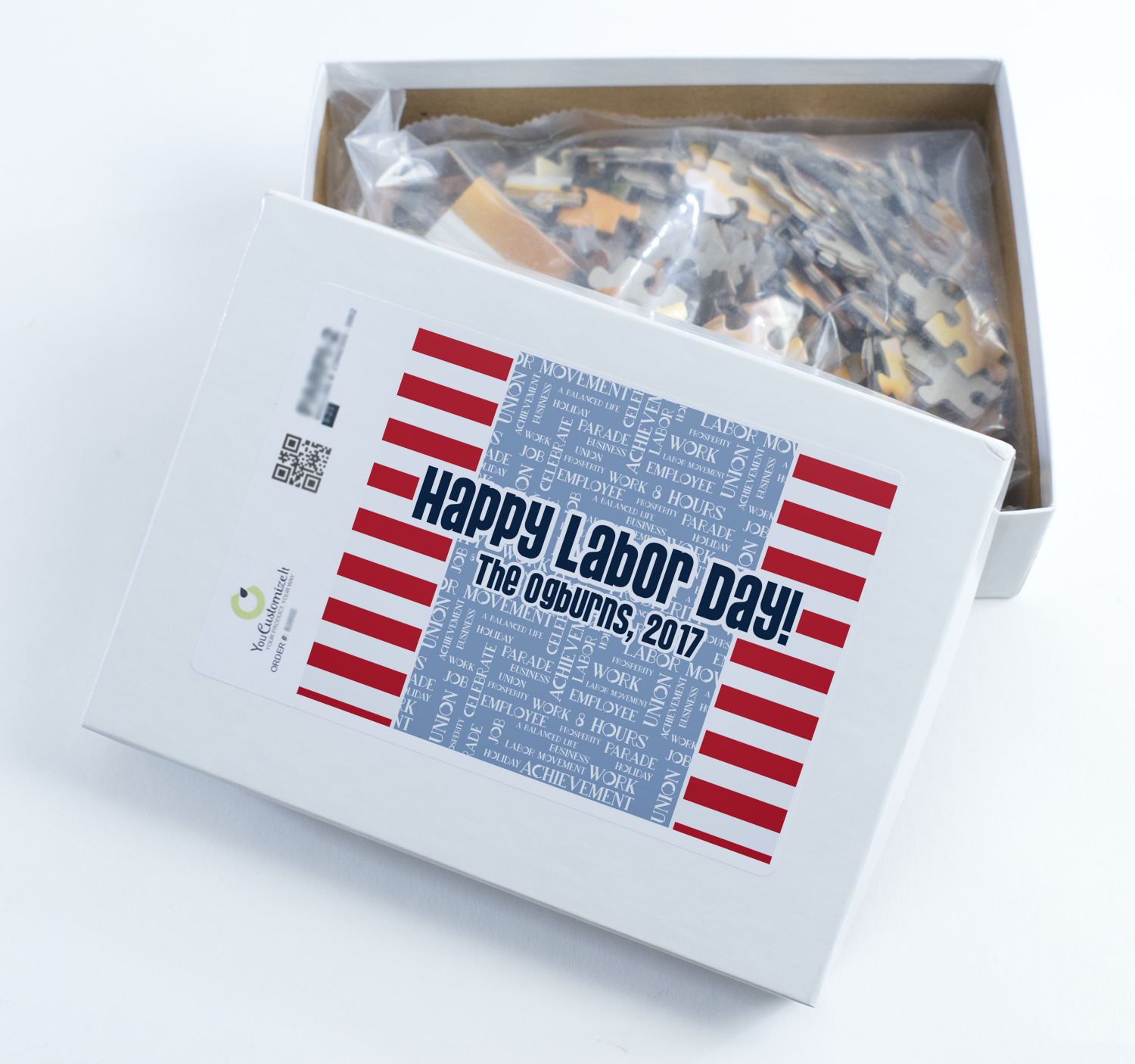 We print our puzzles on thick white chipboard in vibrant colors, then laminate the chipboard and die cut your puzzle. Your jigsaw puzzle is shipped to you in a box with the image of the puzzle on the box.