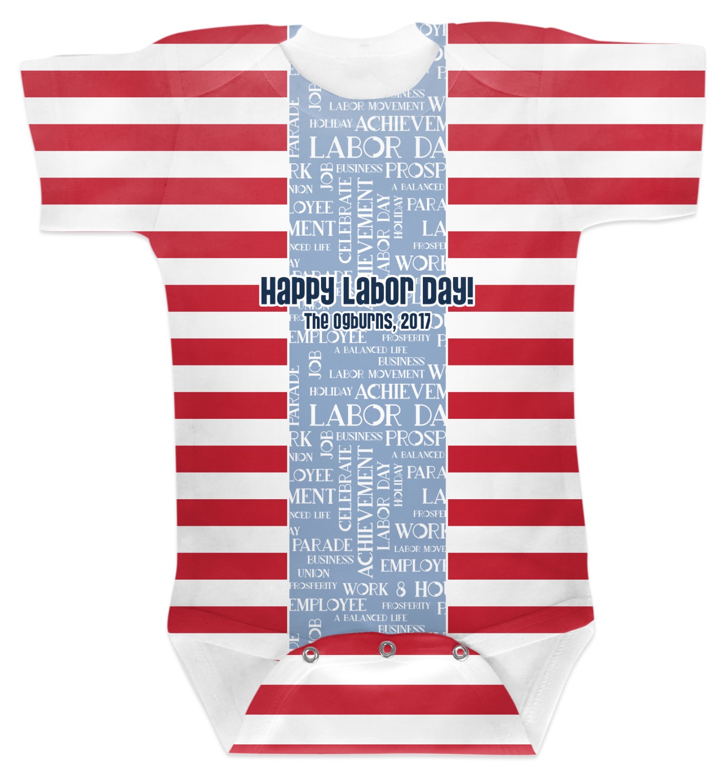 A fun red, white, and blue Labor Day badge is used in the coordinating part of the design. There are two different kinds of fonts used. One in the word cloud and one used in the personalization.