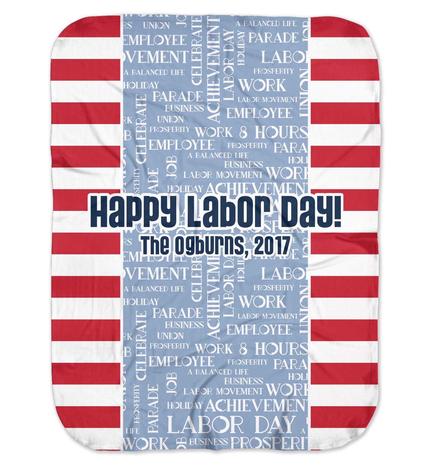A fun red, white, and blue Labor Day badge is used in the coordinating part of the design. There are two different kinds of fonts used. One in the word cloud and one used in the personalization.