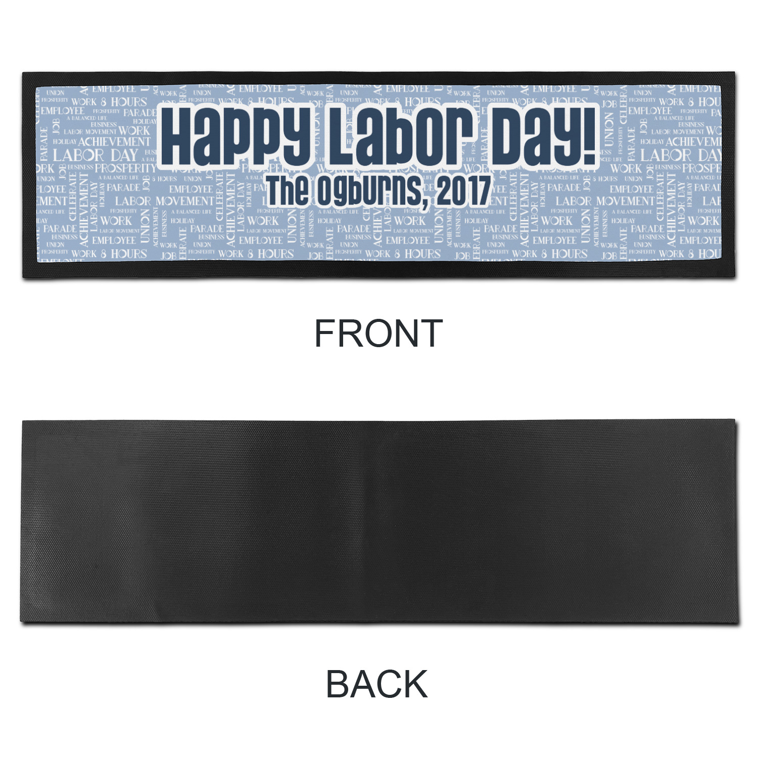 A fun red, white, and blue Labor Day badge is used in the coordinating part of the design. There are two different kinds of fonts used. One in the word cloud and one used in the personalization.