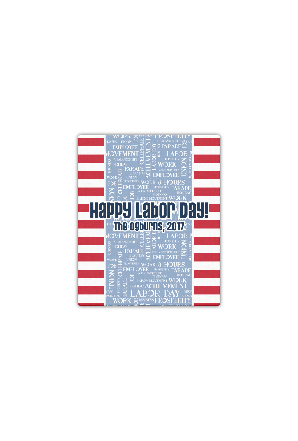 A fun red, white, and blue Labor Day badge is used in the coordinating part of the design. There are two different kinds of fonts used. One in the word cloud and one used in the personalization.