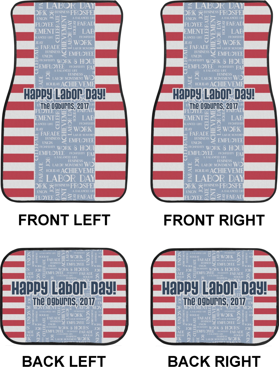 We craft our auto floor mats mats from polyester, apply a black finish to the edges, and lined at the bottom to prevent slippage. These mats protect your floors from grass, mud, and any accidental spills. We display your personalized design on the front face of each mat. The sizes of these car floor liners are standardized to provide a versatile fit for all vehicles. The front rows car mats measure at 17 by 26.5 inches, while the back rows measure at 17 by 13 inches. We sell three packages of car floor mats. You can purchase a pair of front row car mats, a pair of back row car mats, or a set of front row and back row car mats. To make an informed purchase, we recommend measuring the surface area of your car floors.