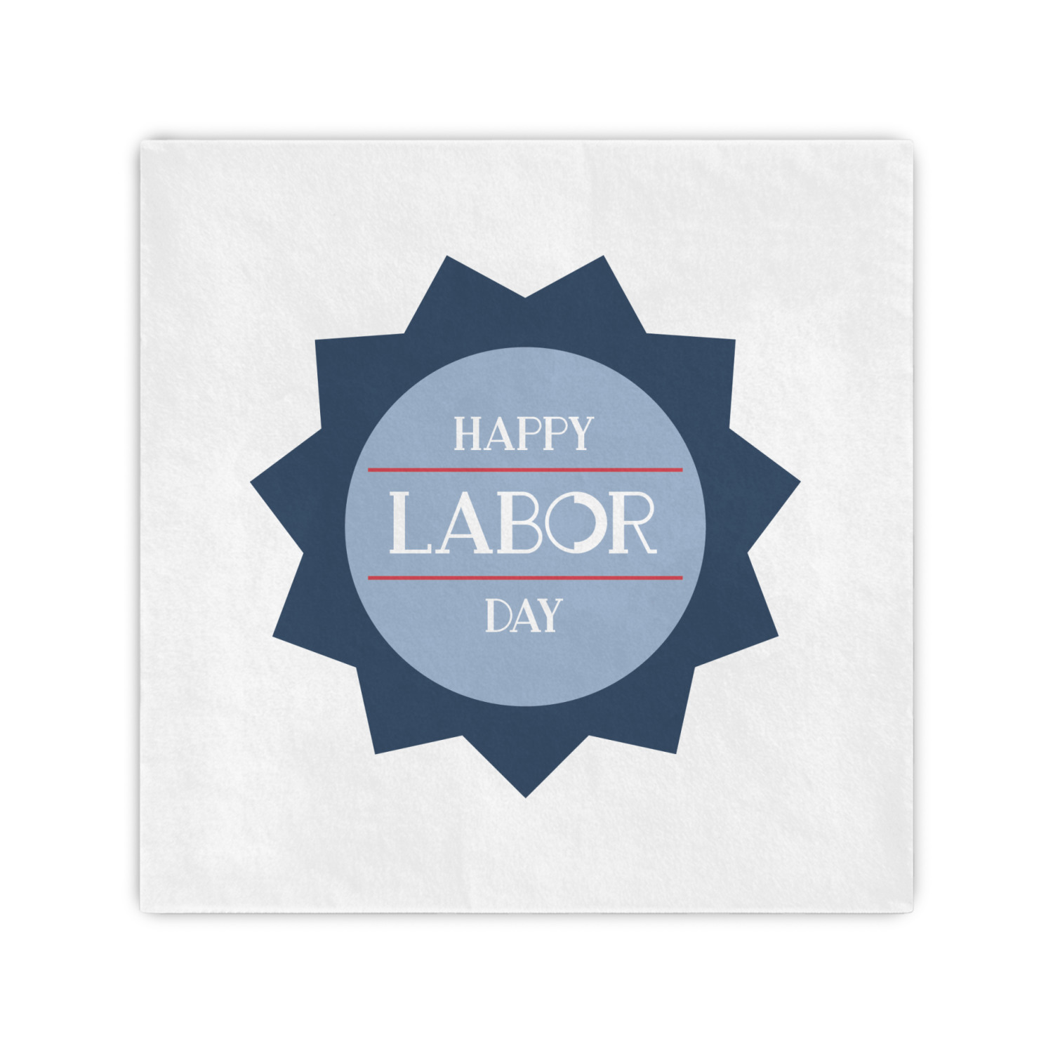 This Labor Design is a fun bright red and a subtle light blue, with white accenting all around. A red and white striped pattern is used, as well as a light blue pattern with a white word cloud on it. The word cloud pattern is a combination of themed words having to do with Labor Day, like "work," "prosperity," and "Labor Day." The red and white striped pattern is used on either side of the word cloud pattern, creating a three-part design.