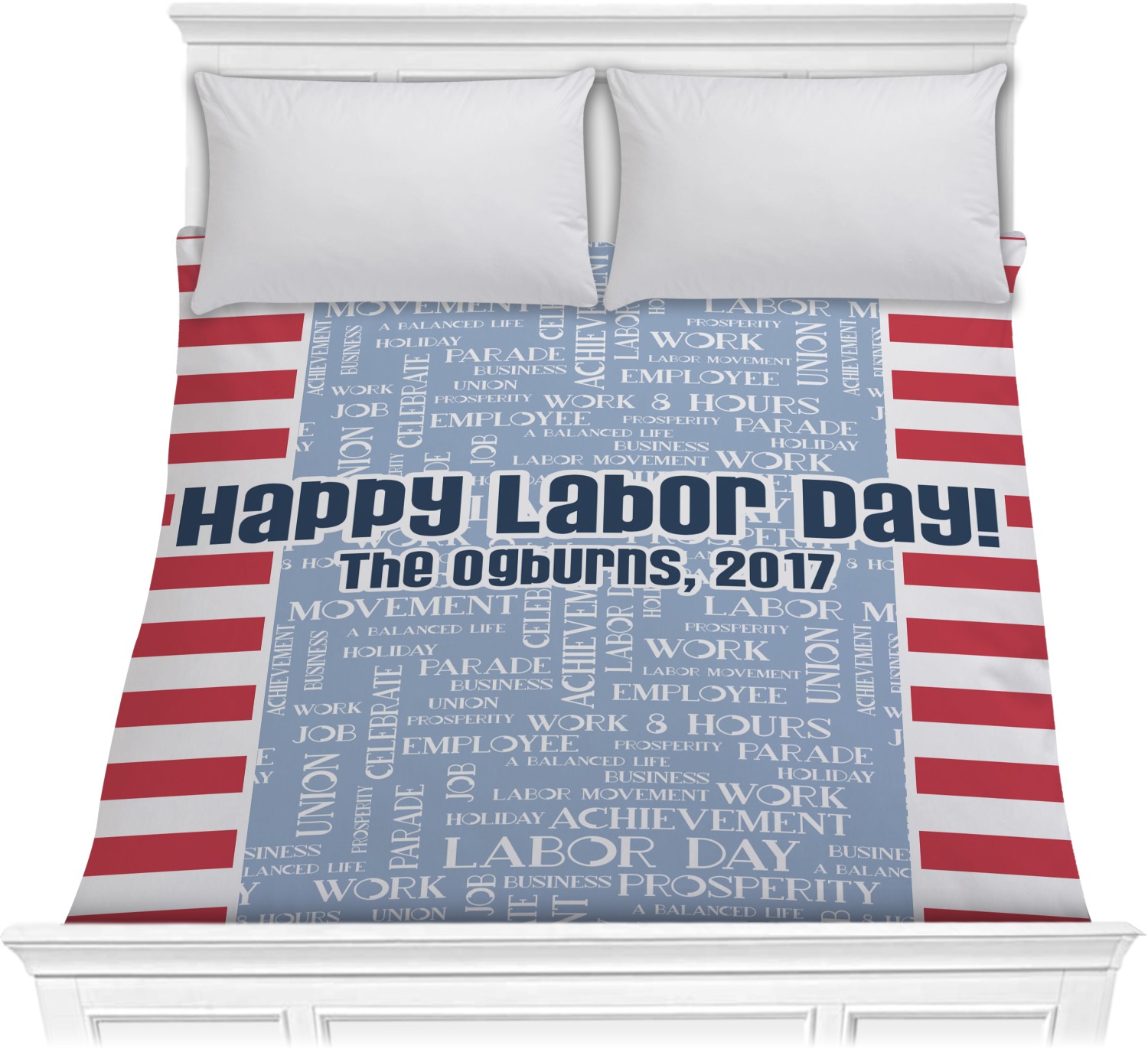 A fun red, white, and blue Labor Day badge is used in the coordinating part of the design. There are two different kinds of fonts used. One in the word cloud and one used in the personalization.
