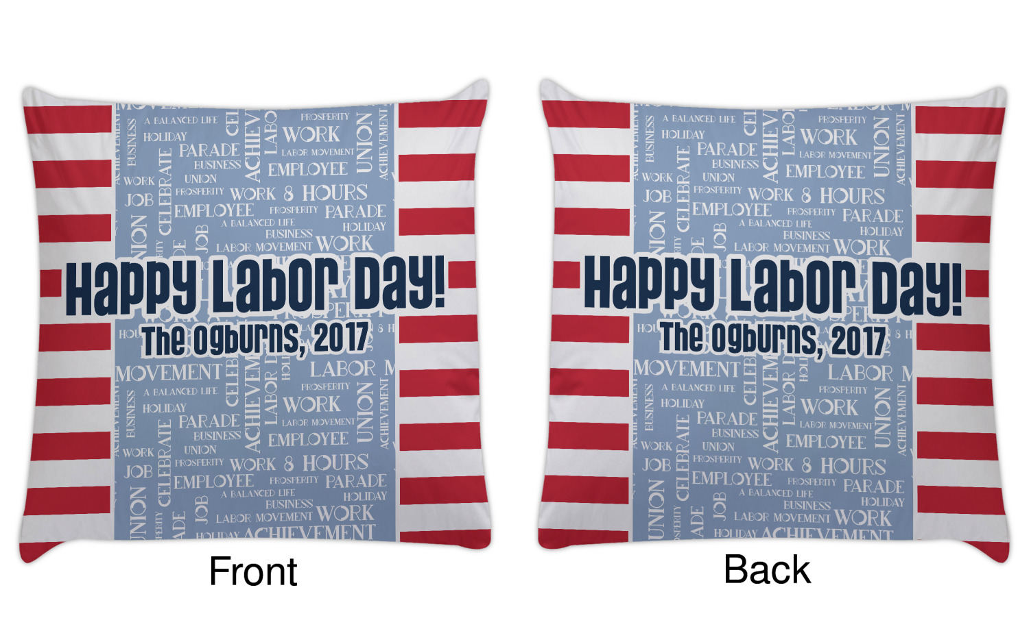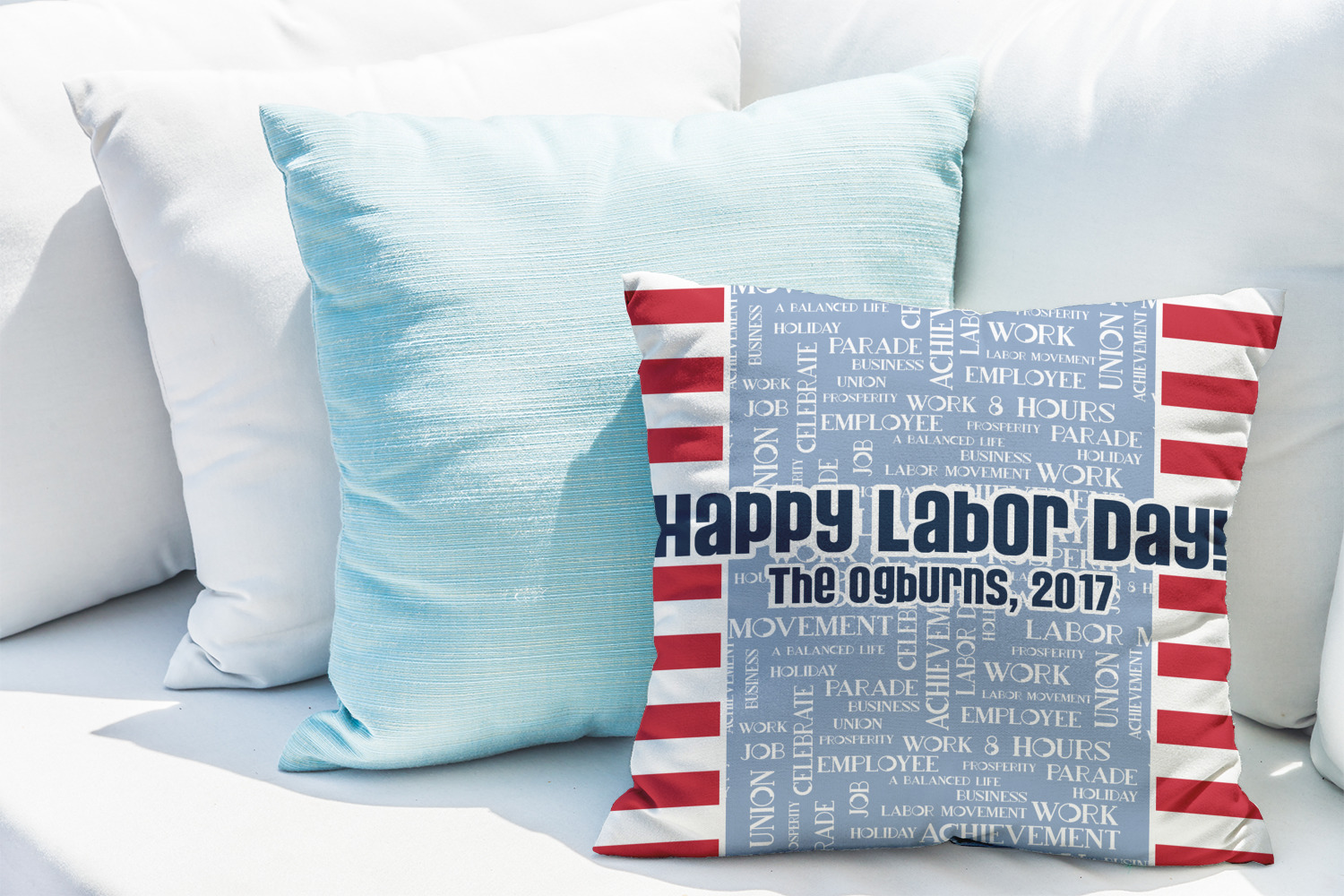 A fun red, white, and blue Labor Day badge is used in the coordinating part of the design. There are two different kinds of fonts used. One in the word cloud and one used in the personalization.