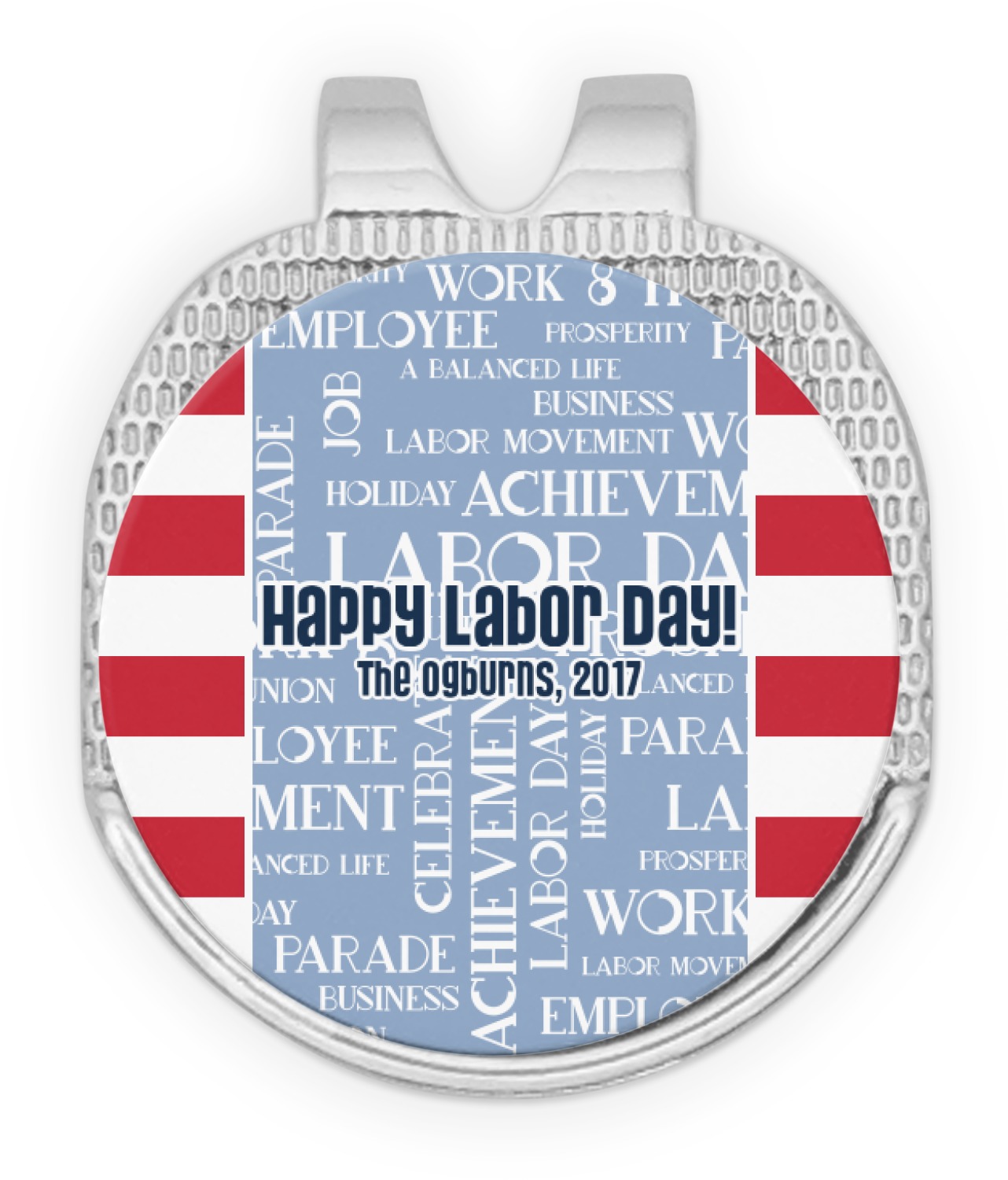 A fun red, white, and blue Labor Day badge is used in the coordinating part of the design. There are two different kinds of fonts used. One in the word cloud and one used in the personalization.