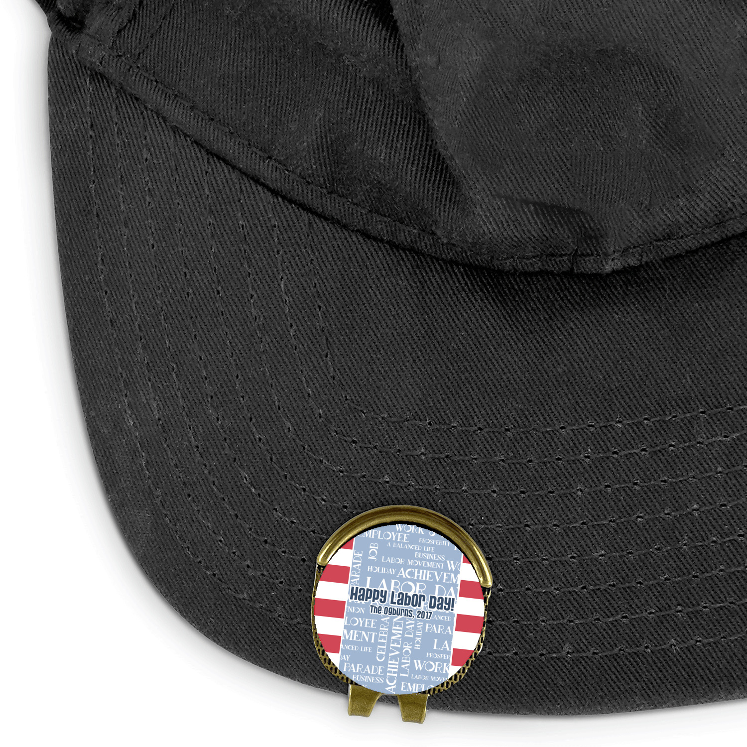 This round shaped little clip is simply 1.25" x 1.5". A clip wraps around to the back of the ball marker holder in order to be able to clip it to the bill of your hat or even your belt. The metal ball marker attaches by a magnet on the clip. Available in stainless steel natural finish or gold finish, you are sure to find one to suit your style. This makes for convenient removal when you need to use it. No more digging in your bag or pockets trying to find it!
