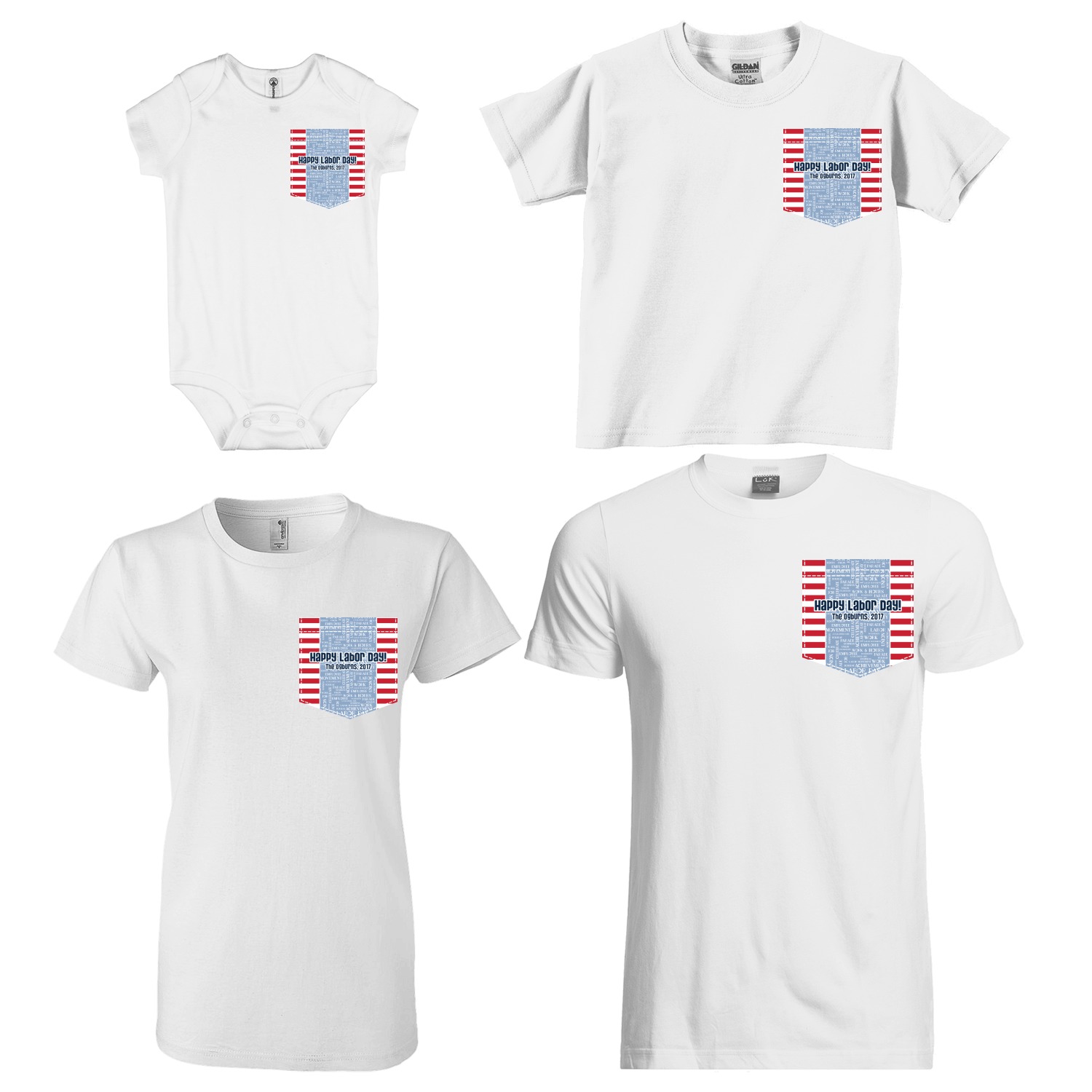 A fun red, white, and blue Labor Day badge is used in the coordinating part of the design. There are two different kinds of fonts used. One in the word cloud and one used in the personalization.