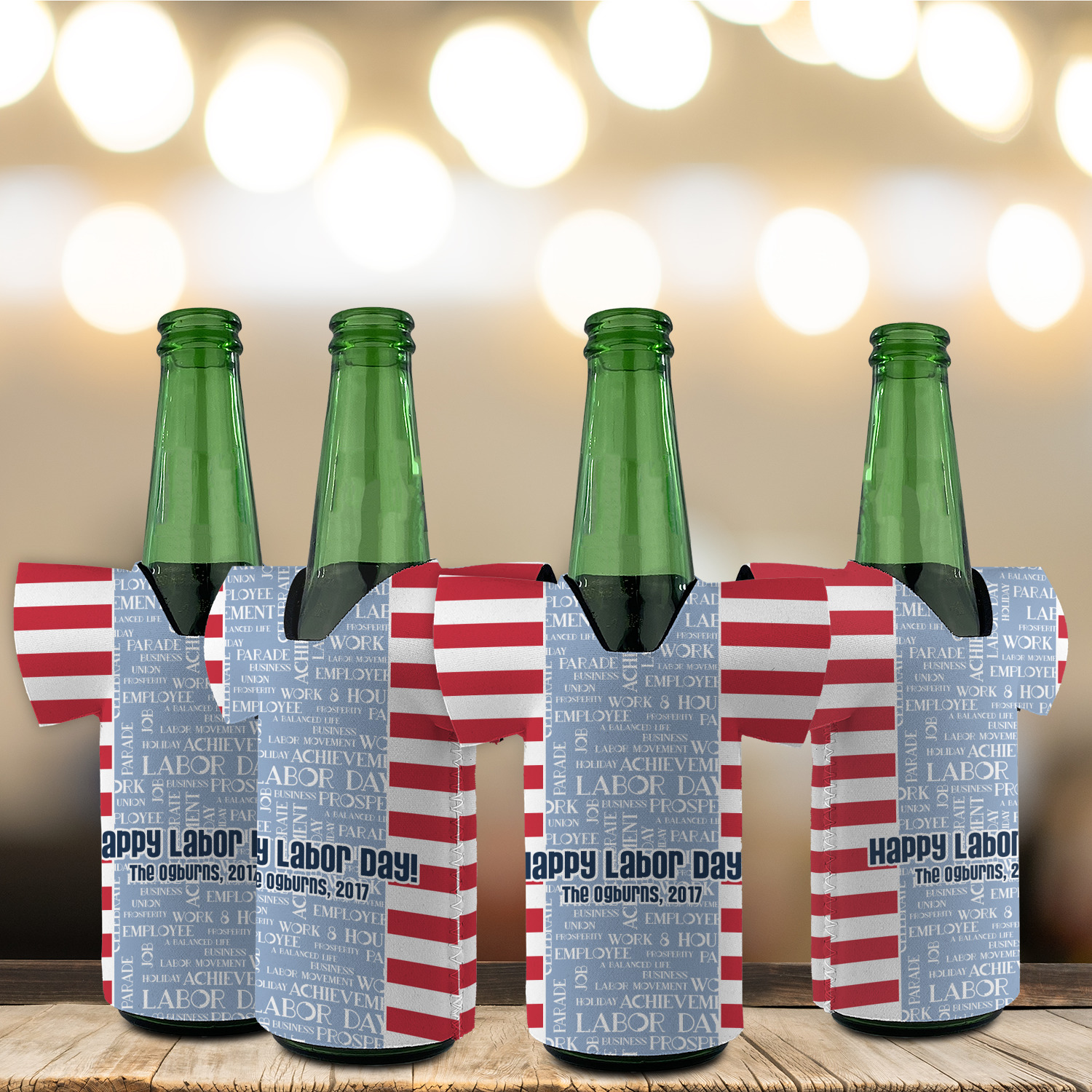Fabricated from a thick, insulating neoprene, these custom can sleeve keep your drink cold, while proudly displaying your customization on all sides. These can sleeves are designed to fit most 12oz bottles. Available in two types - zipper cooler for insulating the full bottle or the jersey style for sports season. Also available as a single can sleeve or in a set of 4 for you to share with friends and family. For convenient storage, they can also be folded.