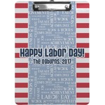 A fun red, white, and blue Labor Day badge is used in the coordinating part of the design. There are two different kinds of fonts used. One in the word cloud and one used in the personalization.