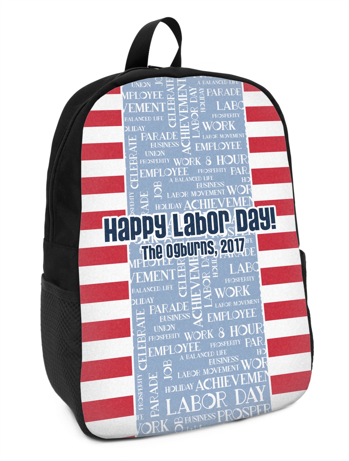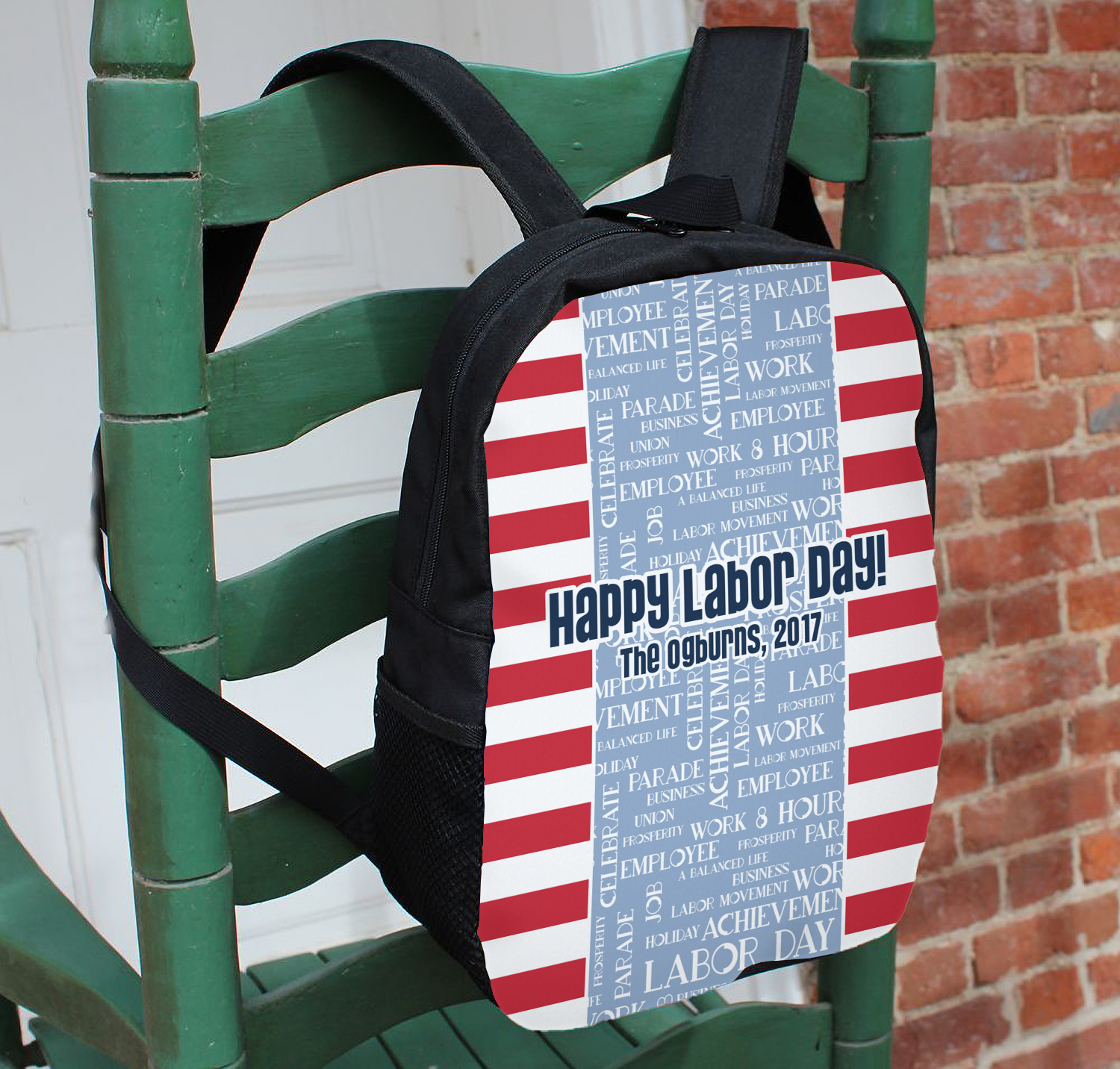 A fun red, white, and blue Labor Day badge is used in the coordinating part of the design. There are two different kinds of fonts used. One in the word cloud and one used in the personalization.