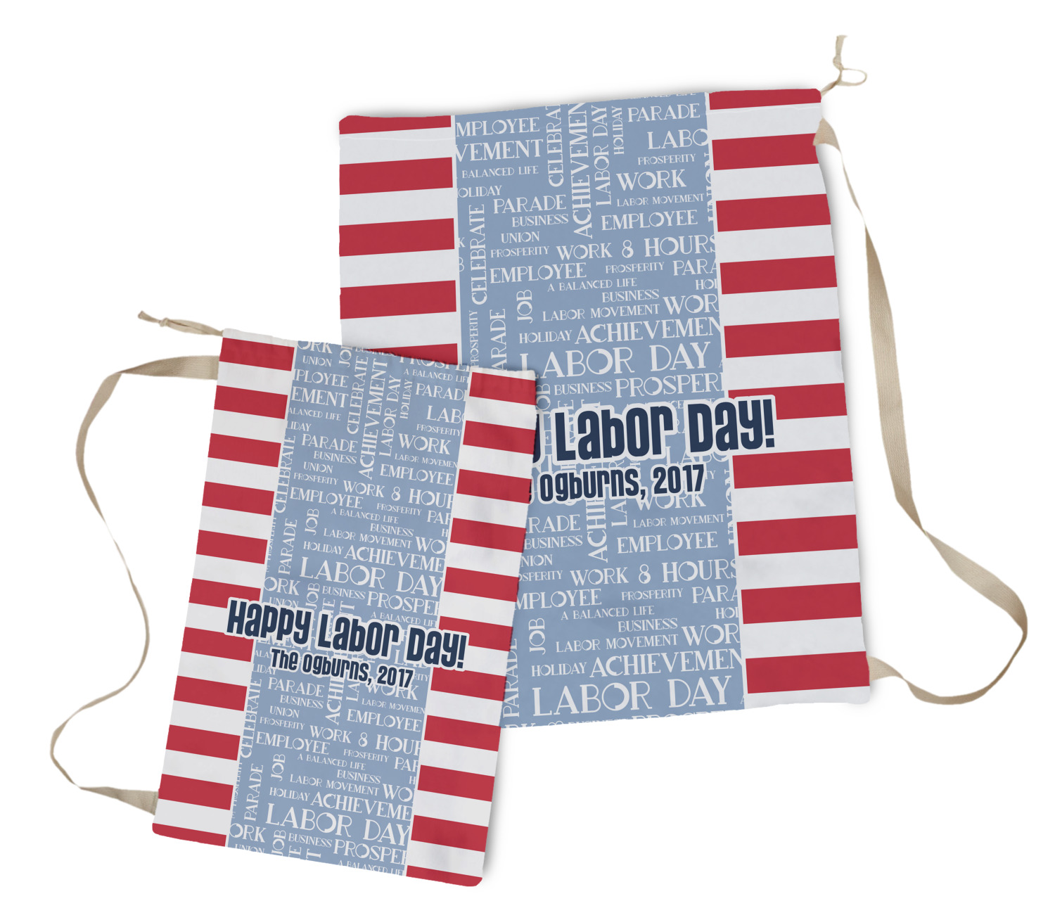 A fun red, white, and blue Labor Day badge is used in the coordinating part of the design. There are two different kinds of fonts used. One in the word cloud and one used in the personalization.