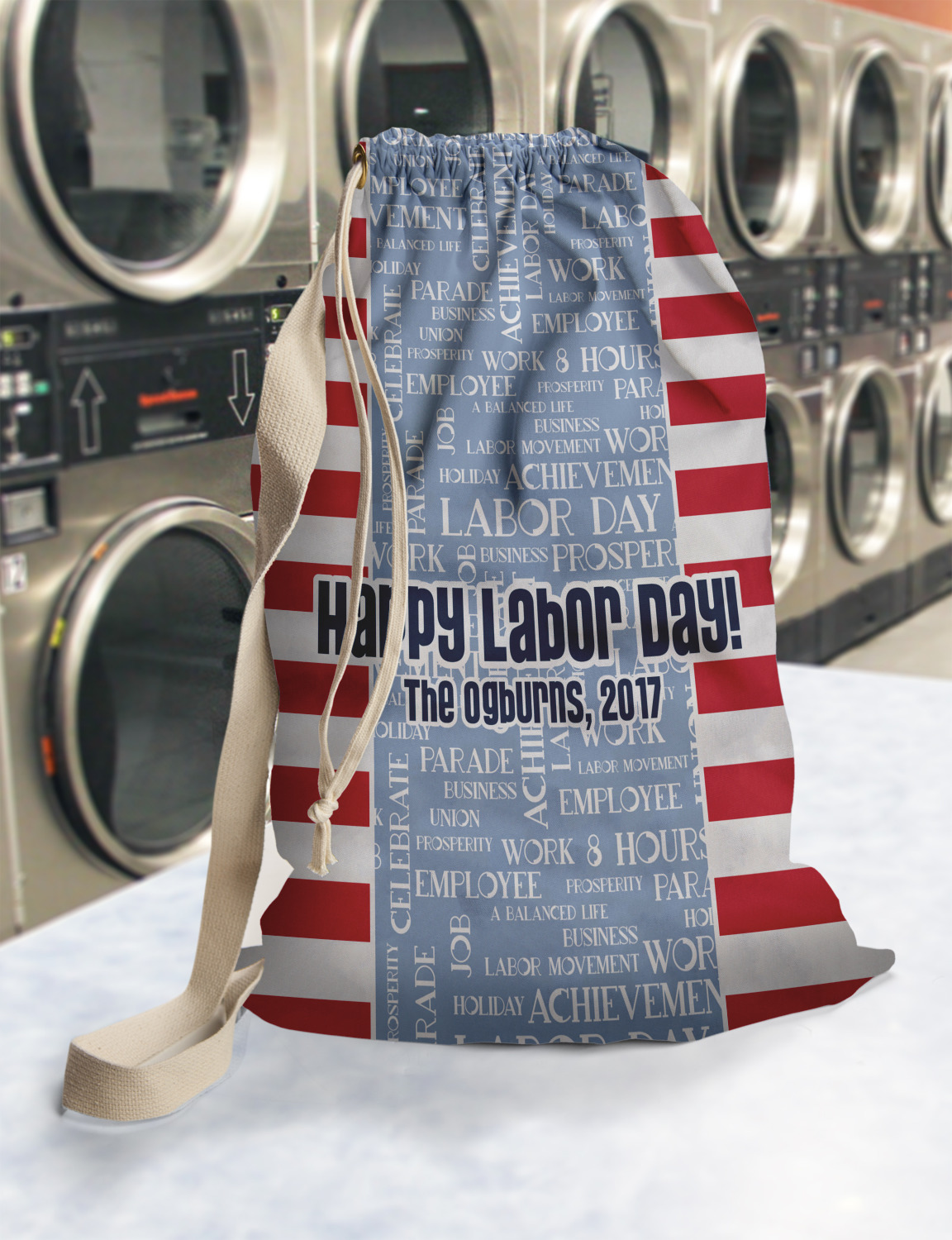 Carry your laundry in style with these customized laundry bags. Available in two sizes, featuring a natural colored woven strap and a cinch cord, these bags hold a lot of clothes or anything else you want to fit in them.