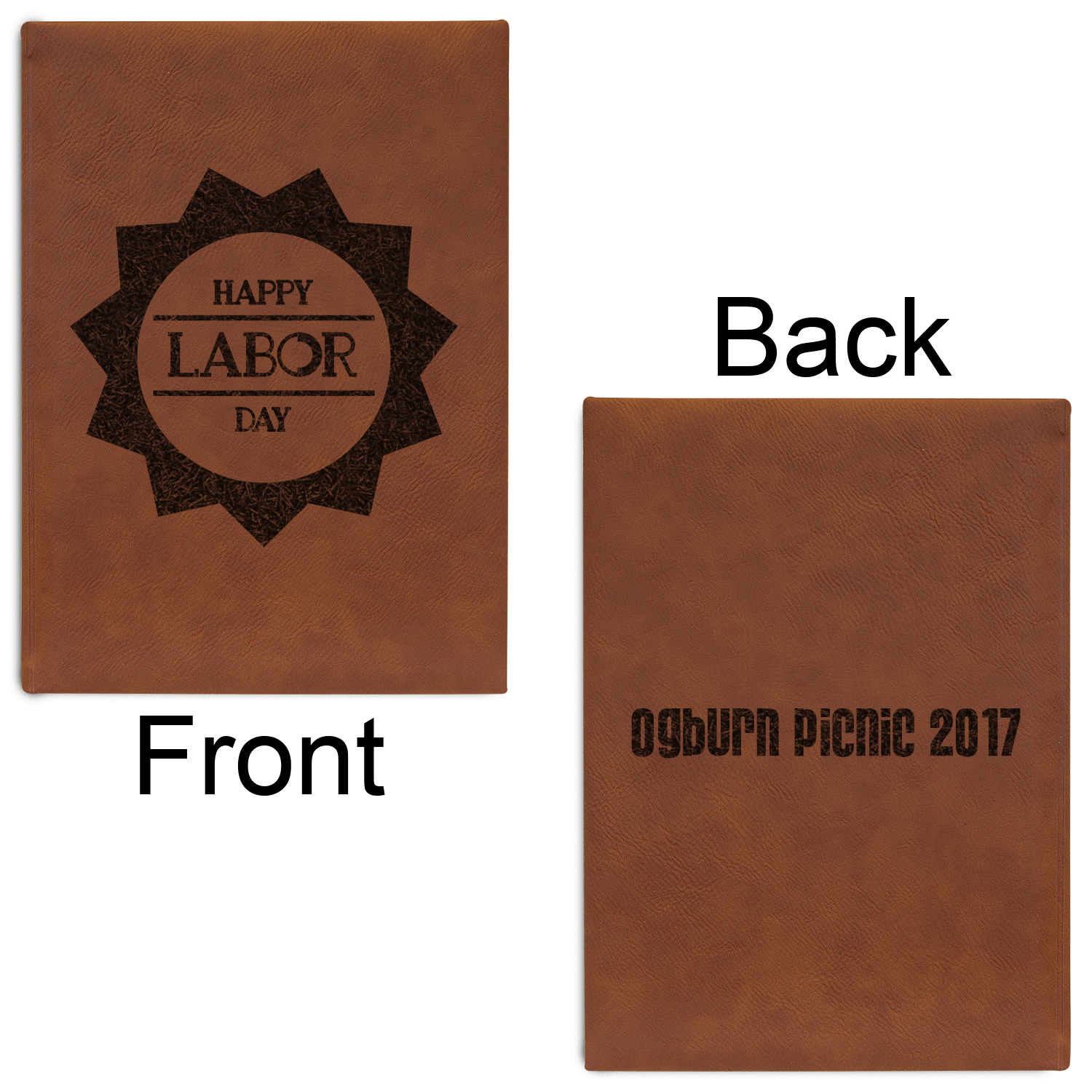 The faux leather covers are a rich cognac / rawhide color and can be customized with your design. From a simple name or monogram or a logo to a detailed mandala - the choice for customization & personalization is truly yours. Customize one of our designs or upload your own.
