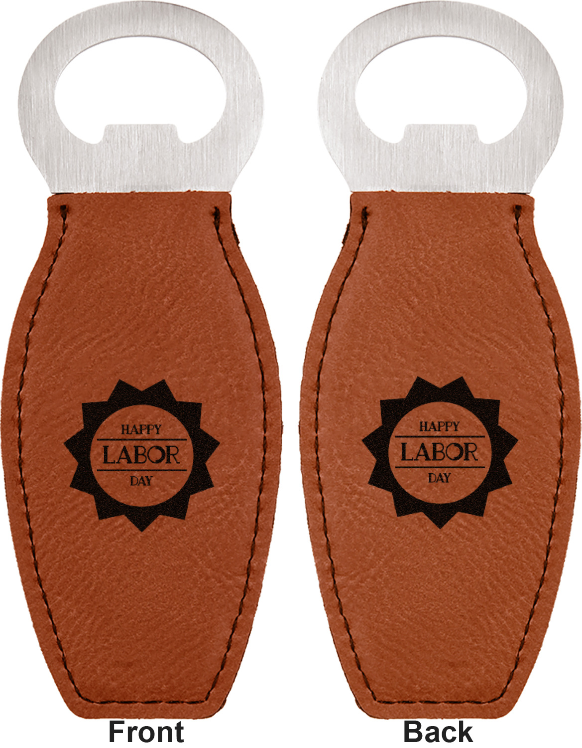 Built from stainless steel, these custom bottle openers are wrapped in a cognac-colored leatherette. Sharp, black stitching lines the edges for extra durability and a finished touch. Your personalization is laser-engraved onto the surface of this leatherette, leaving behind a crisp, black coloration. At 4.6 by 1.8 inches, this beer bottle opener gives you much of leverage when trying to open a stubborn bottle. On the opposite end of the opener, you'll find a magnet that you can use to display your new, unique bottle opener!