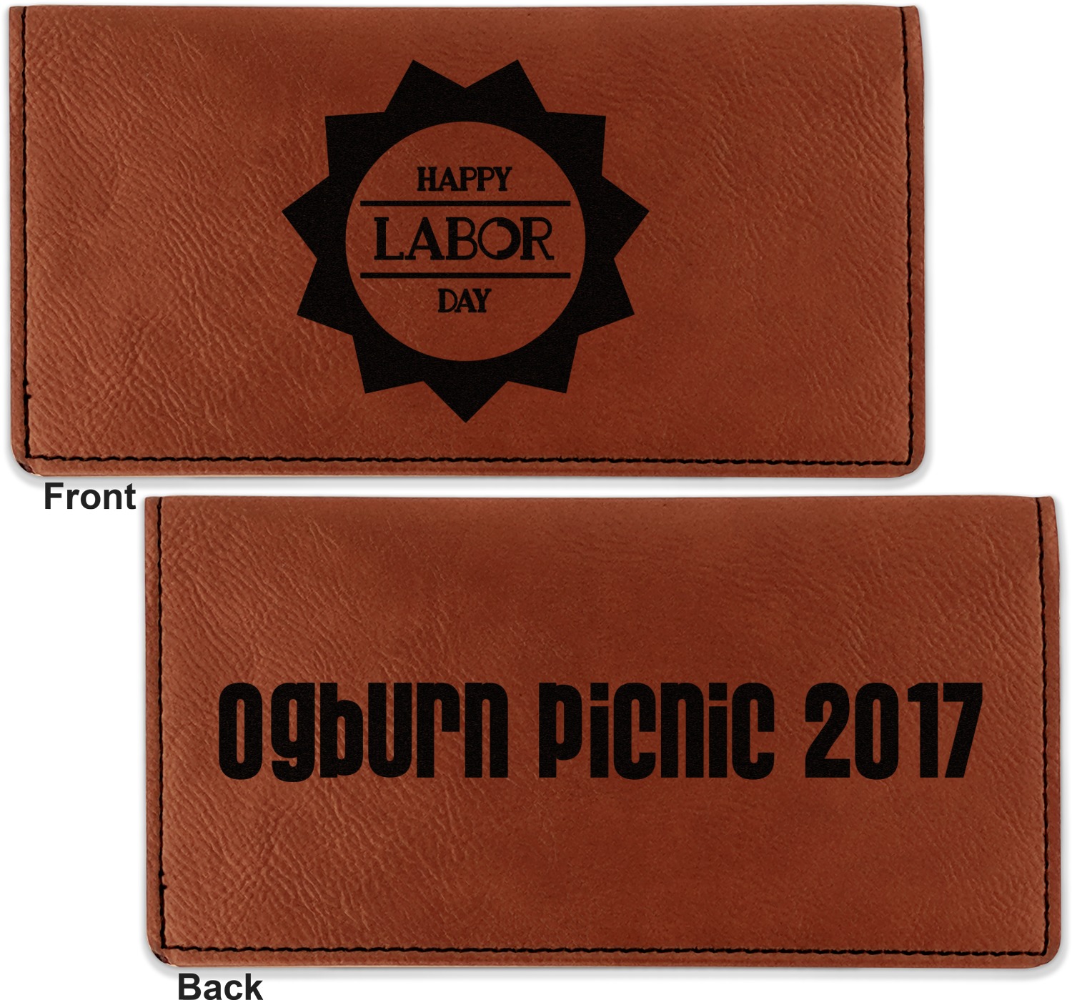 Go into our design center to start personalizing. Your checkbook cover will be laser engraved, making the graphic or text a black color. Choose a fun saying, monogram, or font to go on your checkbook cover. You have the opportunity to do it double or single sided.
